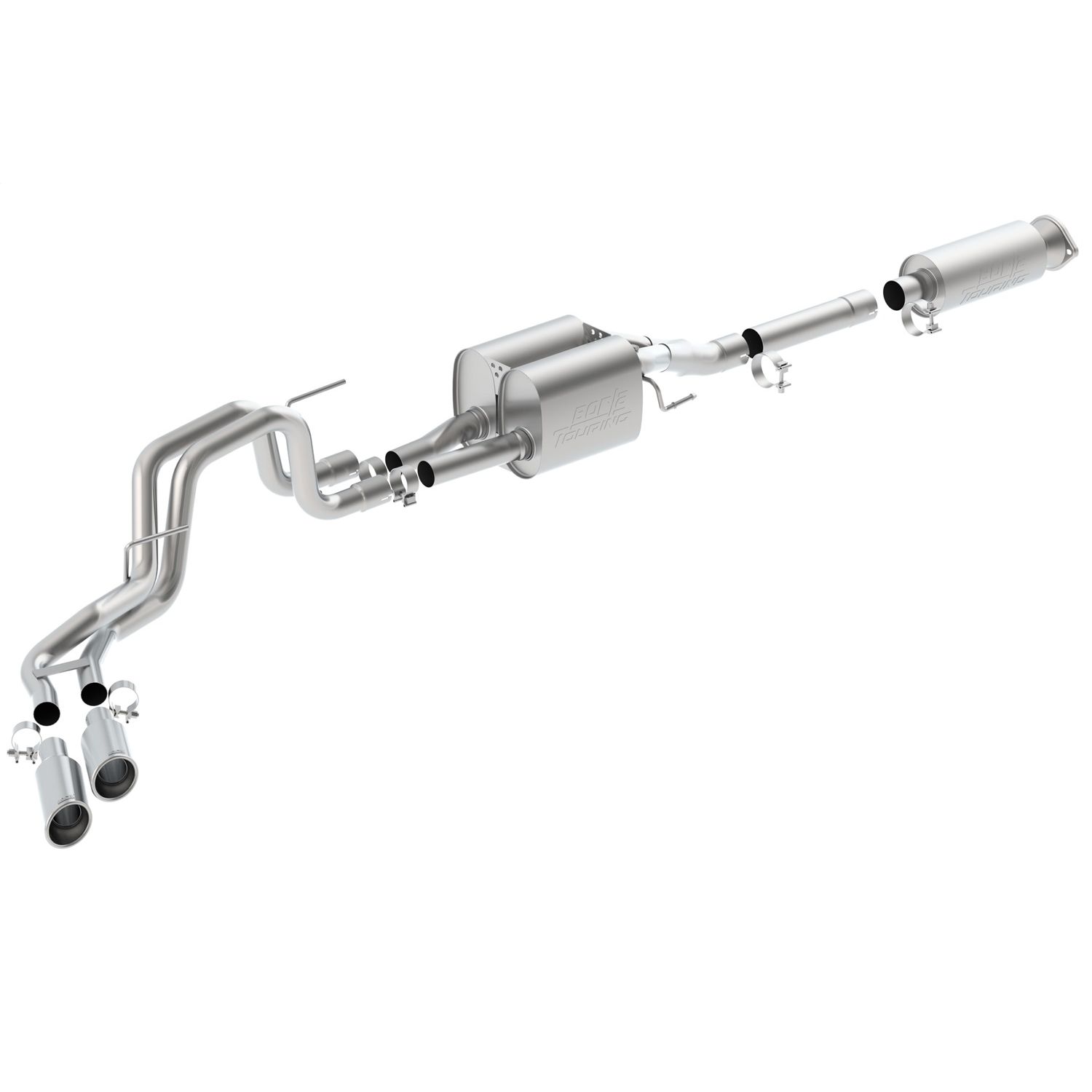 Touring Cat-Back(tm) Exhaust System '10-'14 Ford F-150 SVT Raptor 6.2L V8 2/4WD Auto. Trans. Ext. Cab/ Std./ Crew Cab/Short Bed (67")/ '11-'12 F-150 Harley Davidson 6.2L V8 2/4WD Auto./Man. Trans. Ext. Cab Std. Bed/ Crew Cab Short Bed (67")
