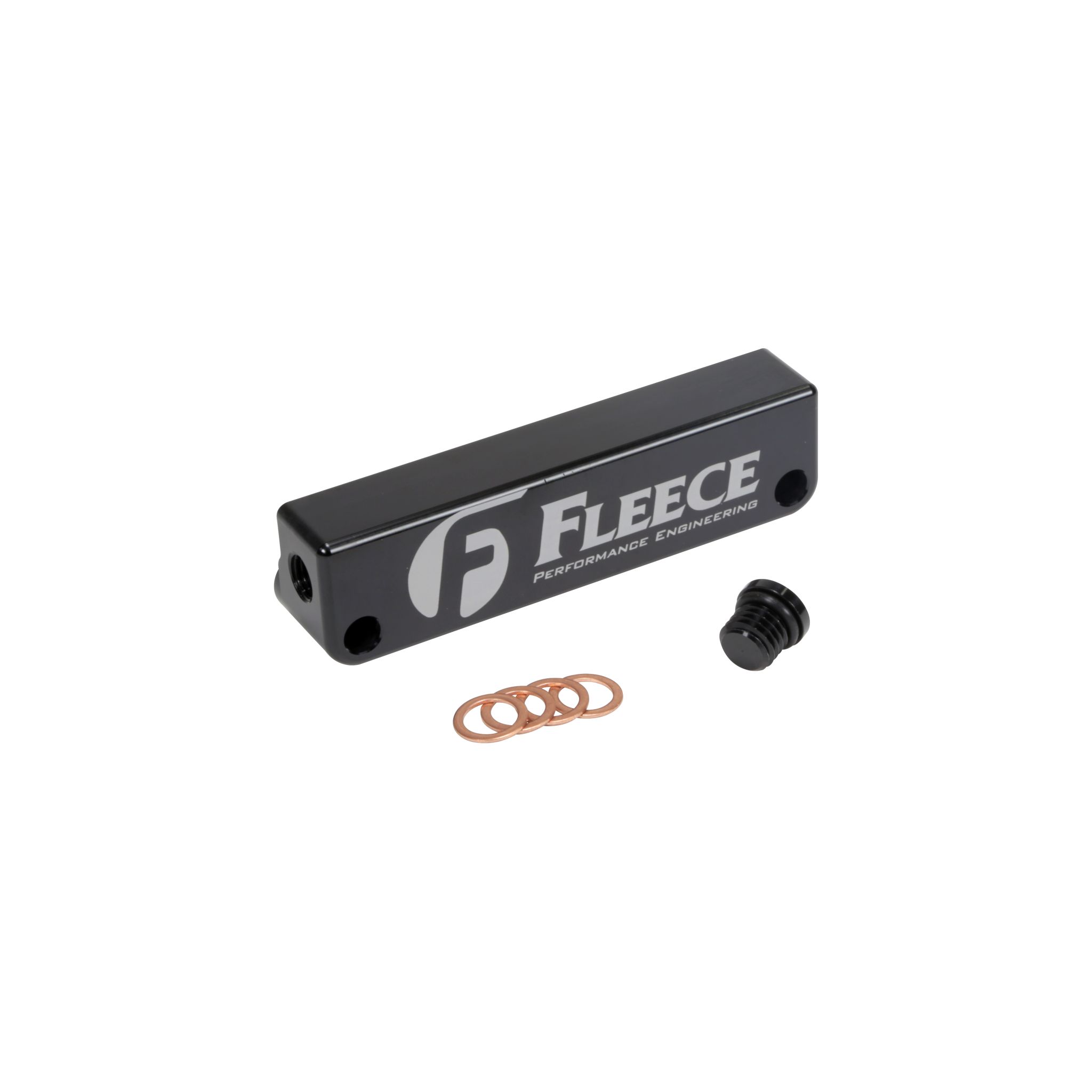 Upgrade your fuel system with this fuel filter delete from Fleece Performance Engineering. If you have an aftermarket fuel filtration system such as an Air Dog or a FASS, your factory fuel filter is no longer necessary. The factory fuel filter only becomes an extra restriction and an eye sore. This fuel filter delete will remove that restriction and help clean up under the hood of your truck. It mounts perfectly to allow the factory fuel return lines to be used without any relocating or bending. It also features a port for the factory WIF (water in fuel) sensor and a 9/16-18 O-ring port for a dual CP3 return line. Kit Includes: Fuel Filter Delete Block Replacement Banjo Washers WIF Sensor Port 9/16-18 O-ring Port Plug Water in Fuel Sensor Plug (M14x2.0)