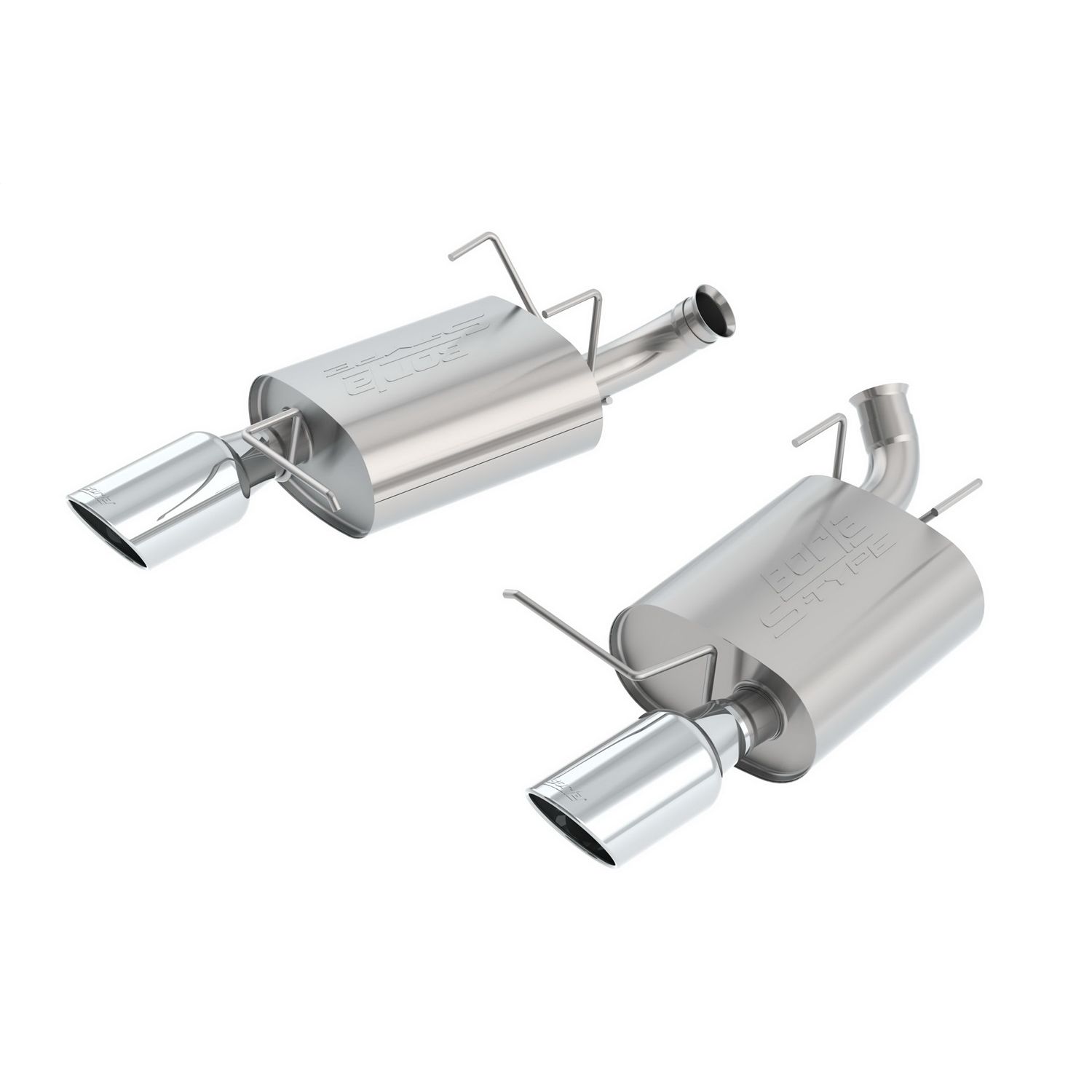 Features bright chrome on T-304 stainless steel tips. Borla(r) Cat-Back(tm) & Axle-back exhaust systems feature patented straight-through and multi-core technology designed to unleash hidden horsepower. Increased exhaust velocity adds power, driving excitement, fuel economy, and the distinctive Borla(r) Sound of Power respected by motoring enthusiasts everywhere. Each system is built from premium T-304 stainless steel, superior to T-400 series knockoffs (such as 409), to give you the absolute best in performance and durability. Ultra-smooth mandrel bends ensure maximum flow & power, and precision computer-controlled CNC manufacturing ensures an accurate fit. Best of all, Borla(r) stands behind every system with a Million-Mile Warranty. Just what you'd expect from the world's most experienced (and most winning) exhaust brand.