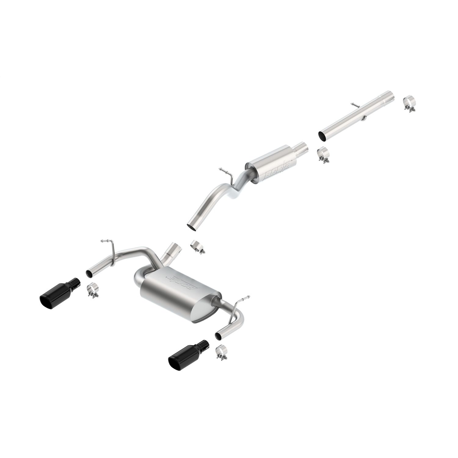 This system features a black chrome finish on T-304 stainless steel tips. Using Borla(r) Stainless Steel Polish p# 21461 is NOT recommended with these black chrome tips. We suggest cleaning the tips with hot water and a microfiber cloth. Borla(r) Cat-Back(tm) and Axle-Back exhaust systems feature patented straight-through and multi-core technology designed to unleash hidden horsepower. Increased exhaust velocity adds power, driving excitement, fuel economy, and the distinctive Borla(r) Sound of Power respected by motoring enthusiasts everywhere. Each system is built from premium T-304 stainless steel, superior to T-400 series knockoffs (such as 409), to give you the absolute best in performance and durability. Ultra-smooth mandrel bends ensure maximum flow & power, and precision computer-controlled CNC manufacturing ensures an accurate fit. Best of all, Borla(r) stands behind every system with a Million-Mile Warranty. Just what you'd expect from the world's most experienced (and most winning) exhaust brand.