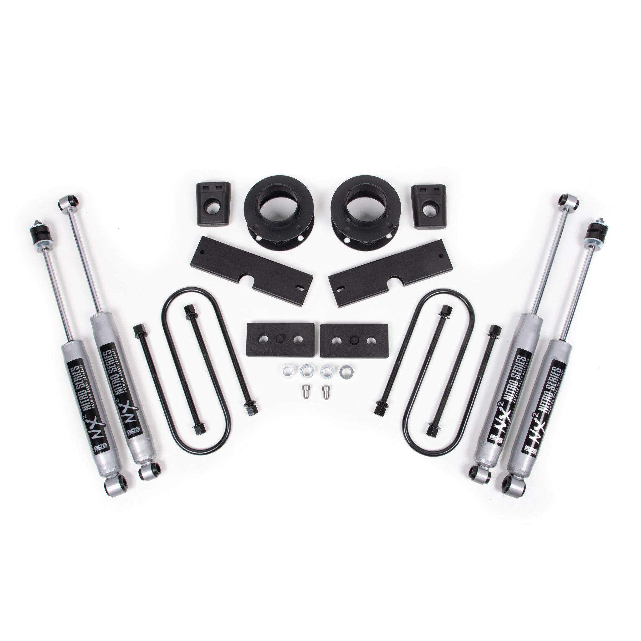 <p>Level the front of your 2013-2023 RAM 3500 4WD truck by installing this 2-inch lift kit from BDS. Works on air ride equipped trucks only. Designed to improve stance this kit includes everything necessary to set your truck up right with clearance for up to 35" tires at an affordable price. The lift kit includes steel fabricated coil spacers, extended bump stops, rear lift blocks, air bag spacer, and custom-tuned NX2 Nitro or FOX 2.0 Performance series shocks.</p>