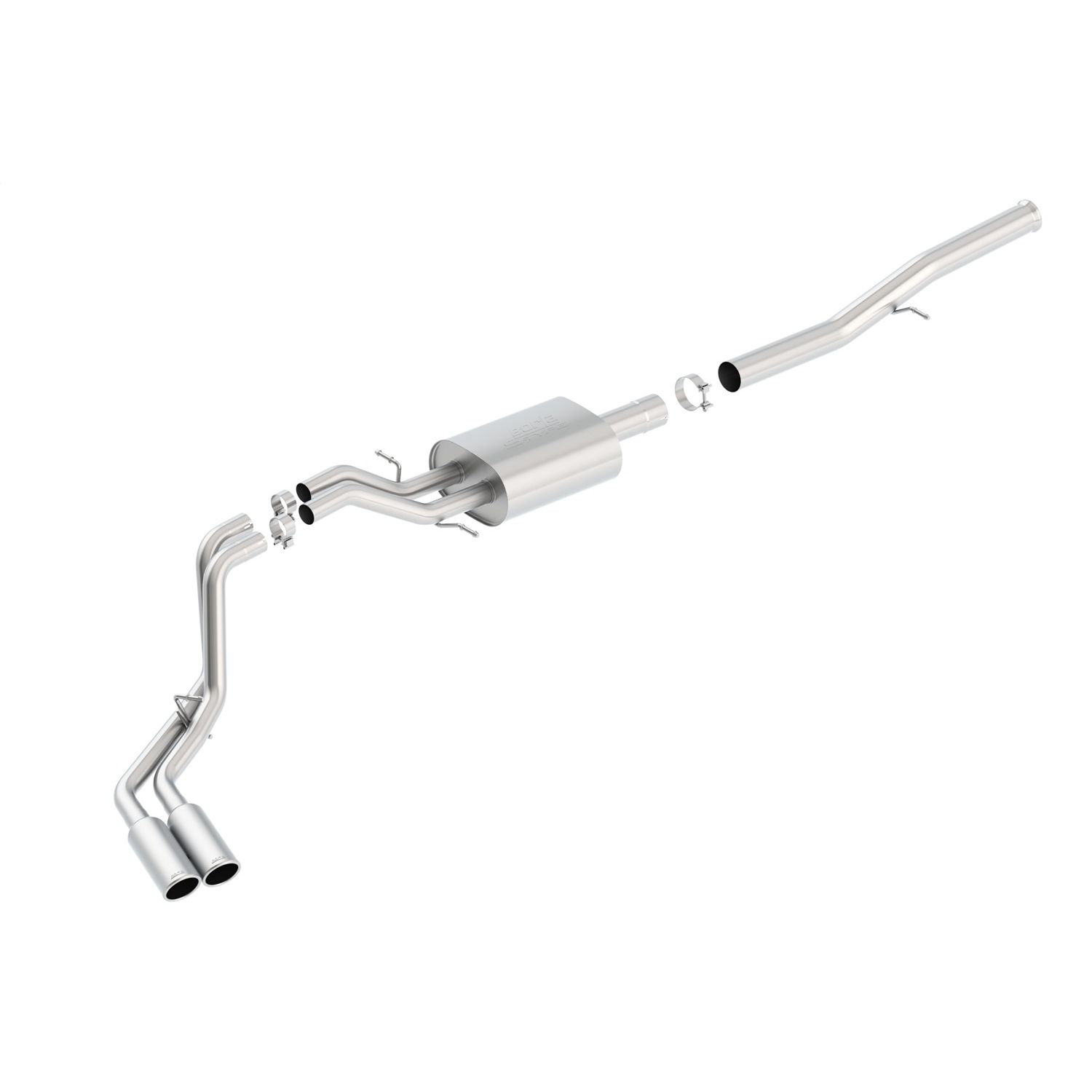 This 3.5" diameter into dual 2.25" Cat-Back™ system delivers the classic S-Type sound with no drone inside the vehicle. The system features single 4" round bright chrome on T-304 stainless steel tips on each tail pipe. A system with black chrome on T-304 stainless steel tips is also available. BORLA® Cat-Back™ & Axle-Back exhaust systems feature patented straight-through and multi-core technology designed to unleash hidden horsepower. Increased exhaust velocity adds power, driving excitement, fuel economy, and the distinctive BORLA® Sound of Power respected by motoring enthusiasts everywhere. Each system is built from premium T-304 stainless steel, superior to T-400 series knockoffs (such as 409), to give you the absolute best in performance and durability. Ultra-smooth mandrel bends ensure maximum flow & power, and precision computer numerical control (CNC) manufacturing ensures an accurate fit. Best of all, BORLA® stands behind every system with a Million-Mile Warranty. Just what you'd expect from the world's most experienced (and most winning) exhaust brand.