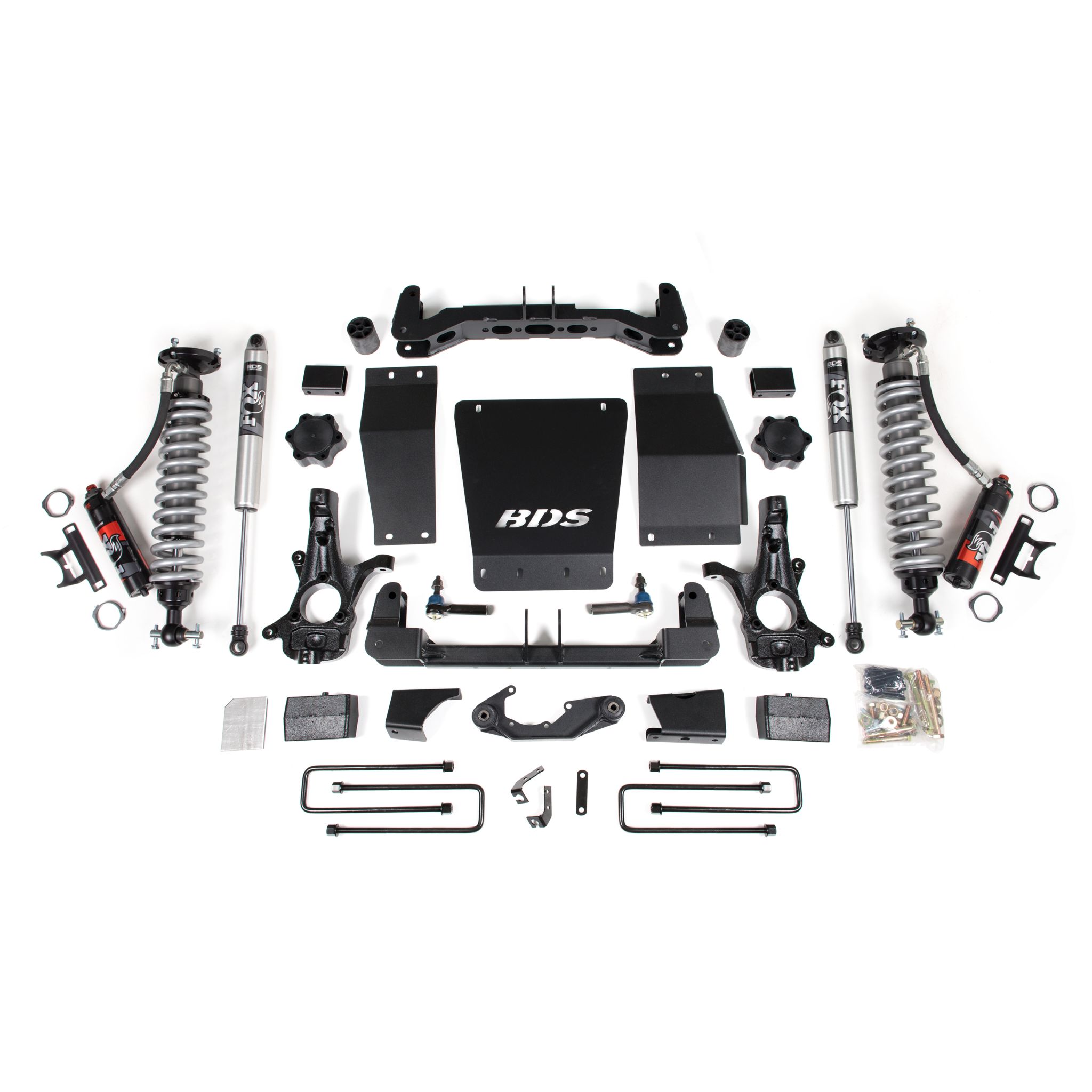 <p>The BDS 4-inch lift kit is an amazing upgrade for your 2014-2018 Chevy Silverado and GMC Sierra 1500 that will leave others in envy. Designed to improve stance, performance, and capability, this kit includes everything necessary to set your truck up right with clearance for up to 33" tires.</p><p>This kit takes advantage of BDS's tried and true high-clearance design for improved ground clearance, strength, and offroad protection while correcting suspension and steering geometry for great on-road handling characteristics. Up front, the kit utilizes full length replacement strut shocks, high-arched 1/4-inch thick steel crossmembers along with a multipiece differential relocation brackets and heavy duty skid plates built for offroad protection. Steering geometry is corrected at the new taller ride height with CNC-machined ductile iron steering knuckles. These combined with the provided sway bar drops, bump stop extensions, brake line brackets, CV spacers, supplied hardware and more provide a comprehensive front suspension lift ready for whatever you throw at it.