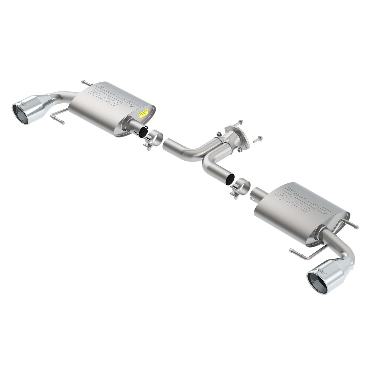 System features polished T-304 stainless steel tips. Borla(r) Cat-Back(tm) & Axle-back exhaust systems feature patented straight-through and multi-core technology designed to unleash hidden horsepower. Increased exhaust velocity adds power, driving excitement, fuel economy, and the distinctive Borla(r) Sound of Power respected by motoring enthusiasts everywhere. Each system is built from premium T-304 stainless steel, superior to T-400 series knockoffs (such as 409), to give you the absolute best in performance and durability. Ultra-smooth mandrel bends ensure maximum flow & power, and precision computer-controlled CNC manufacturing ensures an accurate fit. Best of all, Borla(r) stands behind every system with a Million-Mile Warranty. Just what you'd expect from the world's most experienced (and most winning) exhaust brand.
