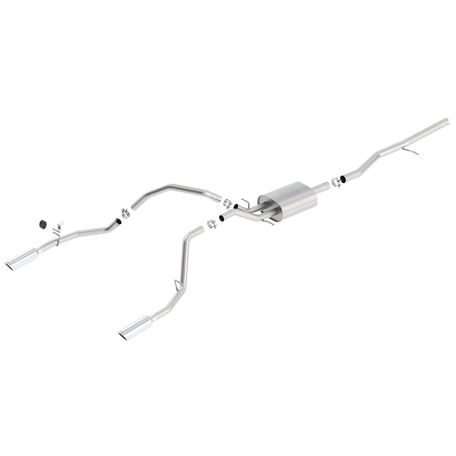 This system features the aggressive ATAK(r) sound and 4" bright chrome on T-304 stainless steel tips. Borla(r) Cat-Back(tm) & Axle-Back multi-core technology is designed to unleash hidden horsepower. Increased exhaust velocity adds power, driving excitement, fuel economy, and the distinctive Borla(r) Sound of Power respected by motoring enthusiasts everywhere. Each system is built from premium T-304 stainless steel, superior to T-400 series knockoffs (such as 409), to give you the absolute best in performance and durability. Ultra-smooth mandrel bends ensure maximum flow & power, and precision computer numerical control (CNC) manufacturing ensures an accurate fit. Best of all, Borla(r) stands behind every system with a Million-Mile Warranty. Just what you'd expect from the world's most experienced (and most winning) exhaust brand.