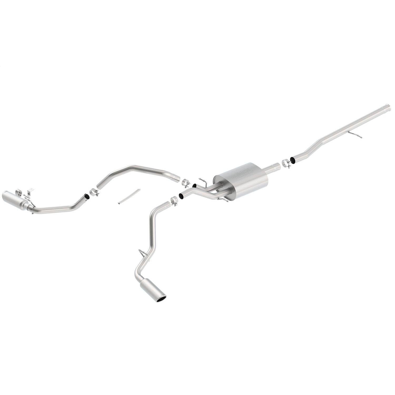 Features bright chrome on T-304 stainless steel tips. Borla(r) Cat-Back(tm) & Axle-Back exhaust systems feature patented straight-through and multi-core technology designed to unleash hidden horsepower. Increased exhaust velocity adds power, driving excitement, fuel economy, and the distinctive Borla(r) Sound of Power respected by motoring enthusiasts everywhere. Each system is built from premium T-304 stainless steel, superior to T-400 series knockoffs (such as 409), to give you the absolute best in performance and durability. Ultra-smooth mandrel bends ensure maximum flow & power, and precision computer-controlled CNC manufacturing ensures an accurate fit. Best of all, Borla(r) stands behind every system with a Million-Mile Warranty. Just what you'd expect from the world's most experienced (and most winning) exhaust brand.