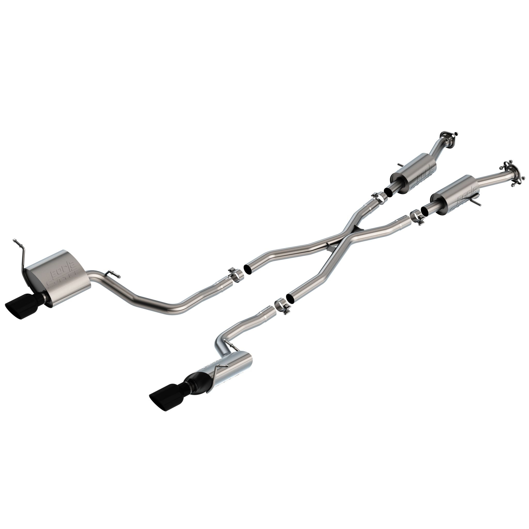 The 140835BC Borla(r) Cat-Back(tm) system is designed specifically for the Jeep Grand Cherokee equipped with the 3.6L V6 engine. It includes a X-Pipe which provides the best all round performance and custom sound and uses only high quality T-304 stainless steel construction. Ultra-smooth mandrel bends ensure maximum flow & power, and precision computer numerical control (CNC) manufacturing ensures an accurate fit. This system features the S-Type sound level and black chrome on T-304 stainless steel tips. Bright chrome tips are also available on system 140835.