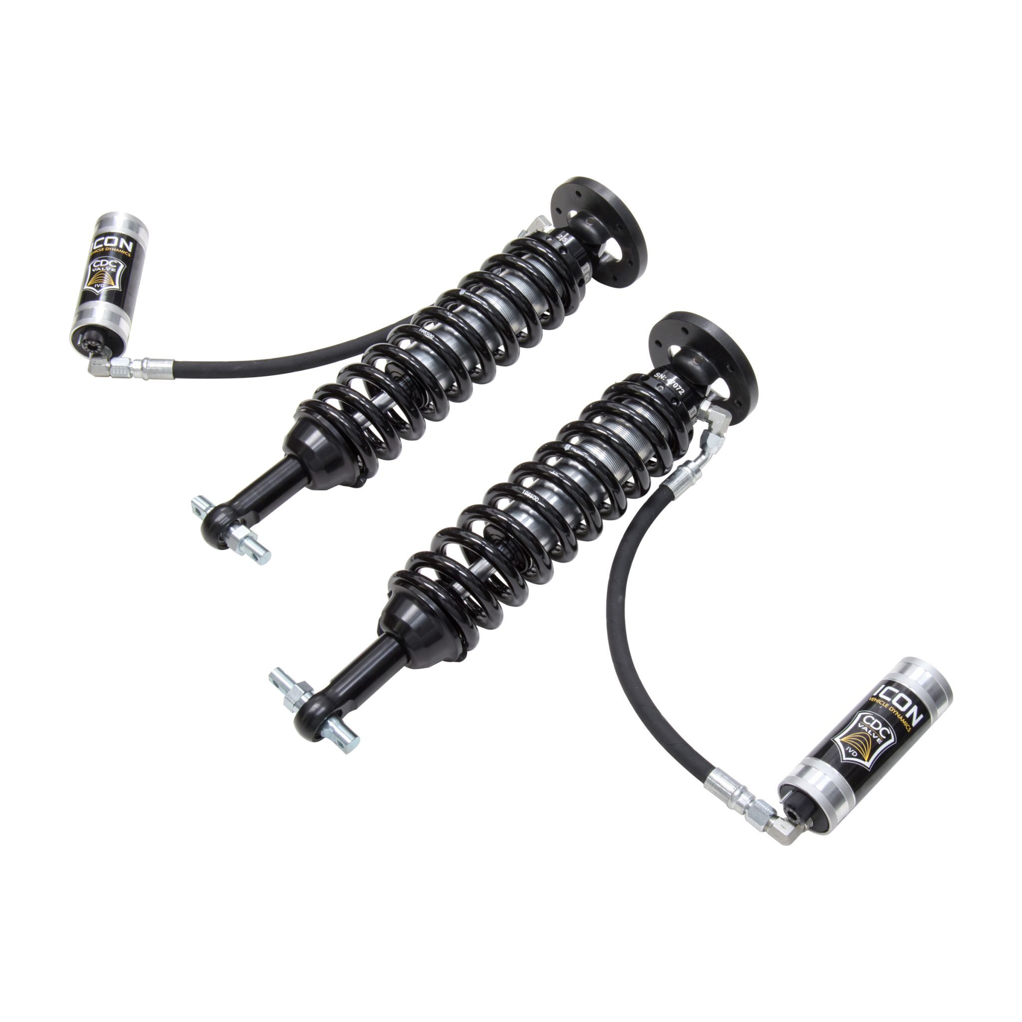 ICON Vehicle Dynamics V.S. Series 2.5” remote reservoir coilover shocks are an incredible upgrade for the front end of the 2014 Ford F-150 2WD truck. ICON’s Vehicle-specific valving provides a sport tuned feel on and off-road while offering 1.75-3” of lift height adjustability for use of larger, more aggressive wheel and tire combinations. The larger 2.5” shock body and increased piston area over stock components provides improved damping ability and outstanding ride characteristics across varying types of terrain. Remote reservoirS ensure optimum performance by increasing the duration of consistent damping regardless of situation, keeping the shocks at a cooler operating temperature during heavy use. When paired with ICON rear 2.0 Aluminum Series or 2.5 Series shocks, vehicle control will be balanced front to rear resulting in the best overall driving experience for your 2014 F-150 2WD.