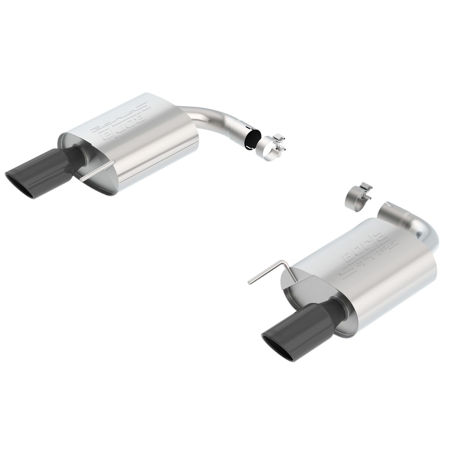 This system features a black chrome finish on T-304 stainless steel tips. Using Borla(r) Stainless Steel Polish p# 21461 is NOT recommended with these black chrome tips. We suggest cleaning the tips with hot water and a microfiber cloth. Borla(r) Cat-Back(tm) and Axle-Back exhaust systems feature patented straight-through and multi-core technology designed to unleash hidden horsepower. Increased exhaust velocity adds power, driving excitement, fuel economy, and the distinctive Borla(r) Sound of Power respected by motoring enthusiasts everywhere. Each system is built from premium T-304 stainless steel, superior to T-400 series knockoffs (such as 409), to give you the absolute best in performance and durability. Ultra-smooth mandrel bends ensure maximum flow & power, and precision computer-controlled CNC manufacturing ensures an accurate fit. Best of all, Borla(r) stands behind every system with a Million-Mile Warranty. Just what you'd expect from the world's most experienced (and most winning) exhaust brand.