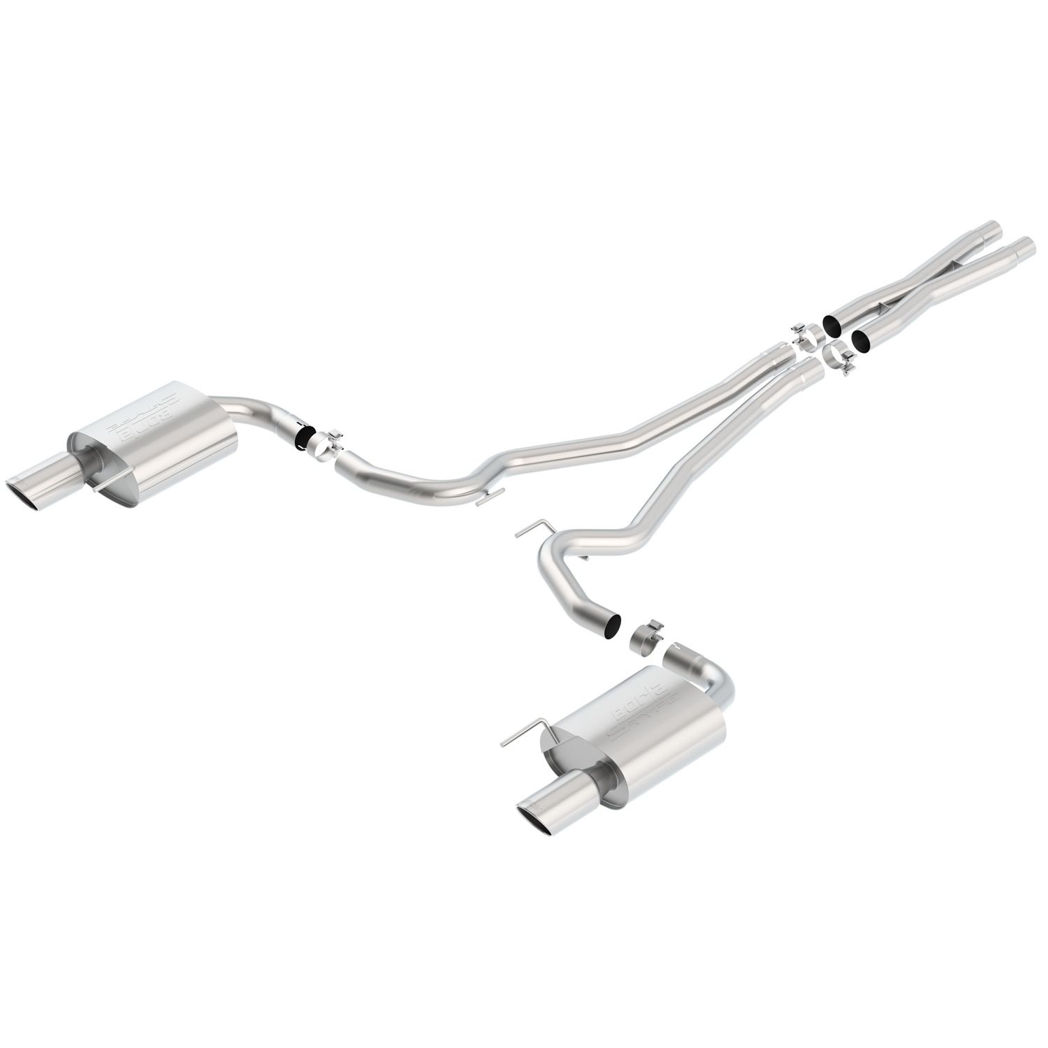 System contains a merge X-Pipe for increased performance and improved sound. Features bright chrome on T-304 stainless steel tips. Borla(r) Cat-Back(tm) & Axle-Back exhaust systems feature patented straight-through and multi-core technology designed to unleash hidden horsepower. Increased exhaust velocity adds power, driving excitement, fuel economy, and the distinctive Borla(r) Sound of Power respected by motoring enthusiasts everywhere. Each system is built from premium T-304 stainless steel, superior to T-400 series knockoffs (such as 409), to give you the absolute best in performance and durability. Ultra-smooth mandrel bends ensure maximum flow & power, and precision computer-controlled CNC manufacturing ensures an accurate fit. Best of all, Borla(r) stands behind every system with a Million-Mile Warranty. Just what you'd expect from the world's most experienced (and most winning) exhaust brand.