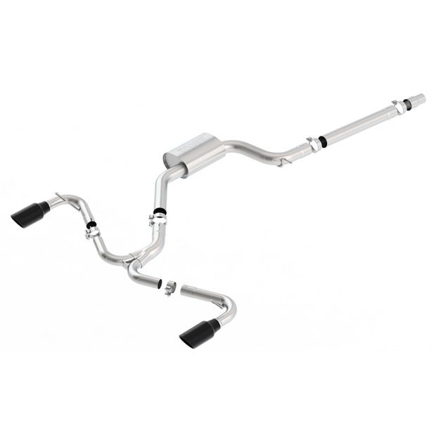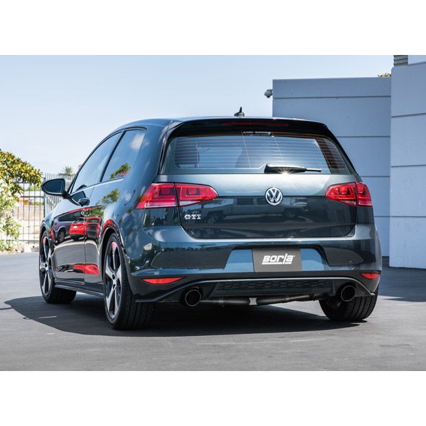 Does NOT fit MK7.5. This 3" diameter into dual 2.25" Cat-Back™ system delivers the classic S-Type sound with no drone inside the vehicle. Add optional resonator 60666 when additional sound reduction is desired. Adding this resonator will achieve the Touring sound level. The resonator is NOT designed to be used with the Original Equipment (O.E.) exhaust system. The system features single 4" round black chrome on T-304 stainless steel tips on each tail pipe. Using BORLA Stainless Steel Polish p# 21461 is NOT recommended with these black chrome tips. We suggest cleaning the tips with hot water and a microfiber cloth. Systems with bright chrome on T-304 stainless steel tips, and brushed T-304 stainless steel tips are also available. BORLA Cat-Back™ Axle-Back exhaust systems feature patented straight-through and multi-core technology designed to unleash hidden horsepower. Increased exhaust velocity adds power, driving excitement, fuel economy, and the distinctive BORLA Sound of Power respected by motoring enthusiasts everywhere. Each system is built from premium T-304 stainless steel, superior to T-400 series knockoffs (such as 409), to give you the absolute best in performance and durability. Ultra-smooth mandrel bends ensure maximum flow & power, and precision computer numerical control (CNC) manufacturing ensures an accurate fit. Best of all, BORLA stands behind every system with a Million-Mile Warranty. Just what you'd expect from the world's most experienced (and most winning) exhaust brand.