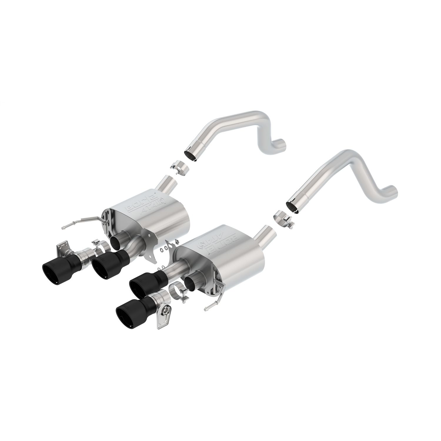 This Axle-Back system does NOT have AFM valves but is equipped with NPP valves. This system features the aggressive ATAK(r) sound and exits through durable high-temperature ceramic black finish on 4.25" intercooled T-304 stainless steel tips. Systems with polished T-304 stainless steel tips and carbon fiber tips are also available. Borla(r) Cat-Back(tm) & Axle-Back exhaust systems feature patented straight-through and multi-core technology to unleash hidden horsepower. Increased exhaust velocity adds power, driving excitement, fuel economy, and the distinctive Borla(r) Sound of Power respected by motoring enthusiasts everywhere. Each system is built from premium T-304 austenitic stainless steel, superior to T-400 series knockoffs (such as 409), to give you the absolute best in performance and durability. Ultra-smooth mandrel bends ensure maximum flow & power, and precision computer numerical control (CNC) manufacturing ensures an accurate fit. Borla(r)'s C7 Corvette Axle-Back exhaust systems are covered under our Million-Mile Warranty for non-moving parts, the exhaust valves are warrantied for 1 year. Failures of original equipment AFM and NPP actuators are not covered by the Borla(r) warranty
