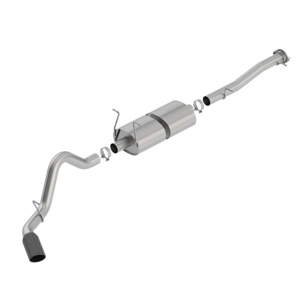 EXCEPT Vehicles with Dual Rear Wheels. This system features a 5" black chrome on T-304 stainless steel tip. Using Borla(r) Stainless Steel Polish p# 21461 is NOT recommended with these black chrome tips. We suggest cleaning the tips with hot water and a microfiber cloth. Borla(r) Cat-Back(tm) and Axle-Back exhaust systems feature patented straight-through and multi-core technology designed to unleash hidden horsepower. Increased exhaust velocity adds power, driving excitement, fuel economy, and the distinctive Borla(r) Sound of Power respected by motoring enthusiasts everywhere. Each system is built from premium T-304 stainless steel, superior to T-400 series knockoffs (such as 409), to give you the absolute best in performance and durability. Ultra-smooth mandrel bends ensure maximum flow& power, and precision computer-controlled CNC manufacturing ensures an accurate fit. Best of all, Borla(r) stands behind every system with a Million-Mile Warranty. Just what you'd expect from the world's most experienced (and most winning) exhaust brand.