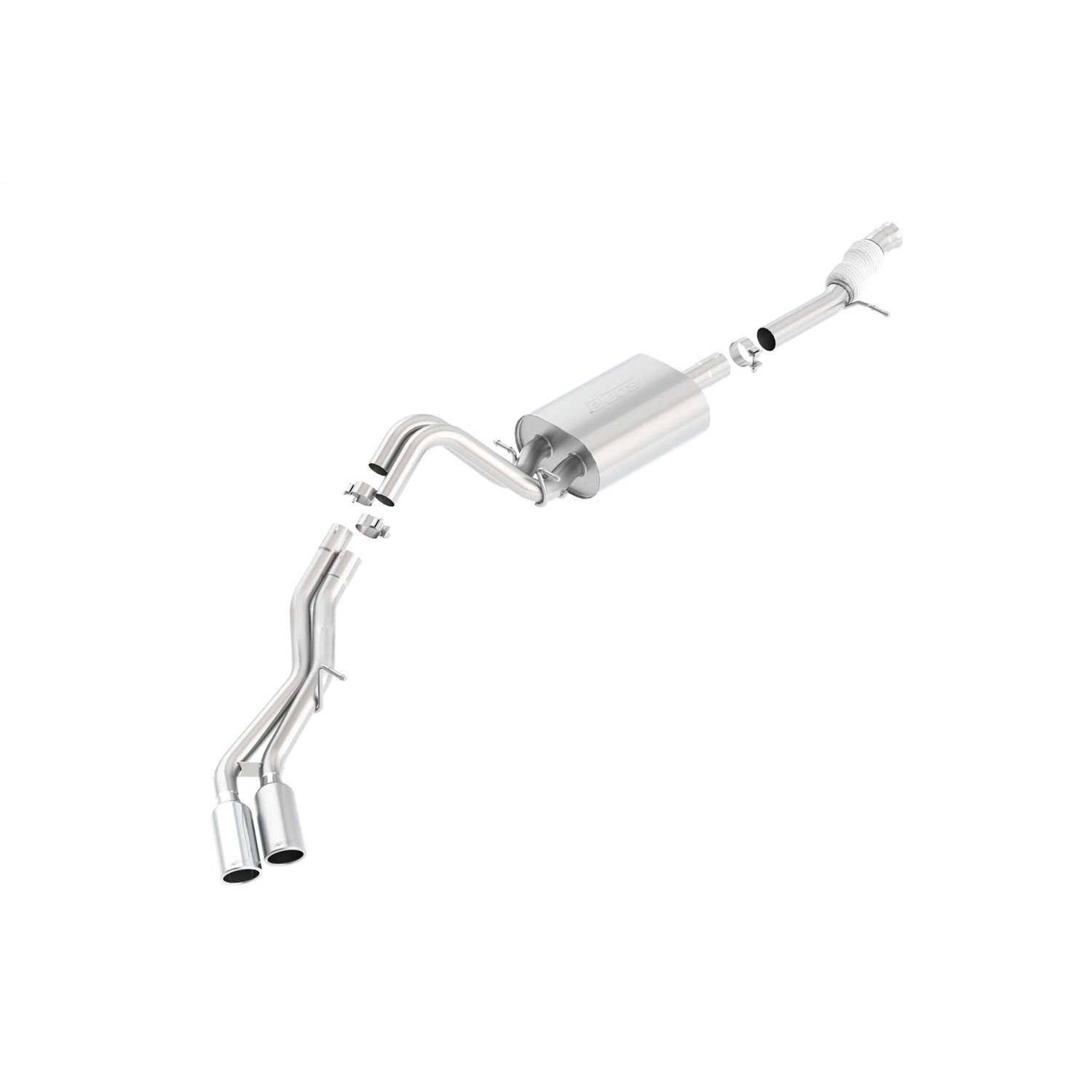 Borla(r) Front Pipe / Extension Pipe contains a Flex Coupling. Features bright chrome on T-304 stainless steel tips. Borla(r) Cat-Back(tm) & Axle-Back exhaust systems feature patented straight-through and multi-core technology designed to unleash hidden horsepower. Increased exhaust velocity adds power, driving excitement, fuel economy, and the distinctive Borla(r) Sound of Power respected by motoring enthusiasts everywhere. Each system is built from premium T-304 stainless steel, superior to T-400 series knockoffs (such as 409), to give you the absolute best in performance and durability. Ultra-smooth mandrel bends ensure maximum flow & power, and precision computer-controlled CNC manufacturing ensures an accurate fit. Best of all, Borla(r) stands behind every system with a Million-Mile Warranty. Just what you'd expect from the world's most experienced (and most winning) exhaust brand.