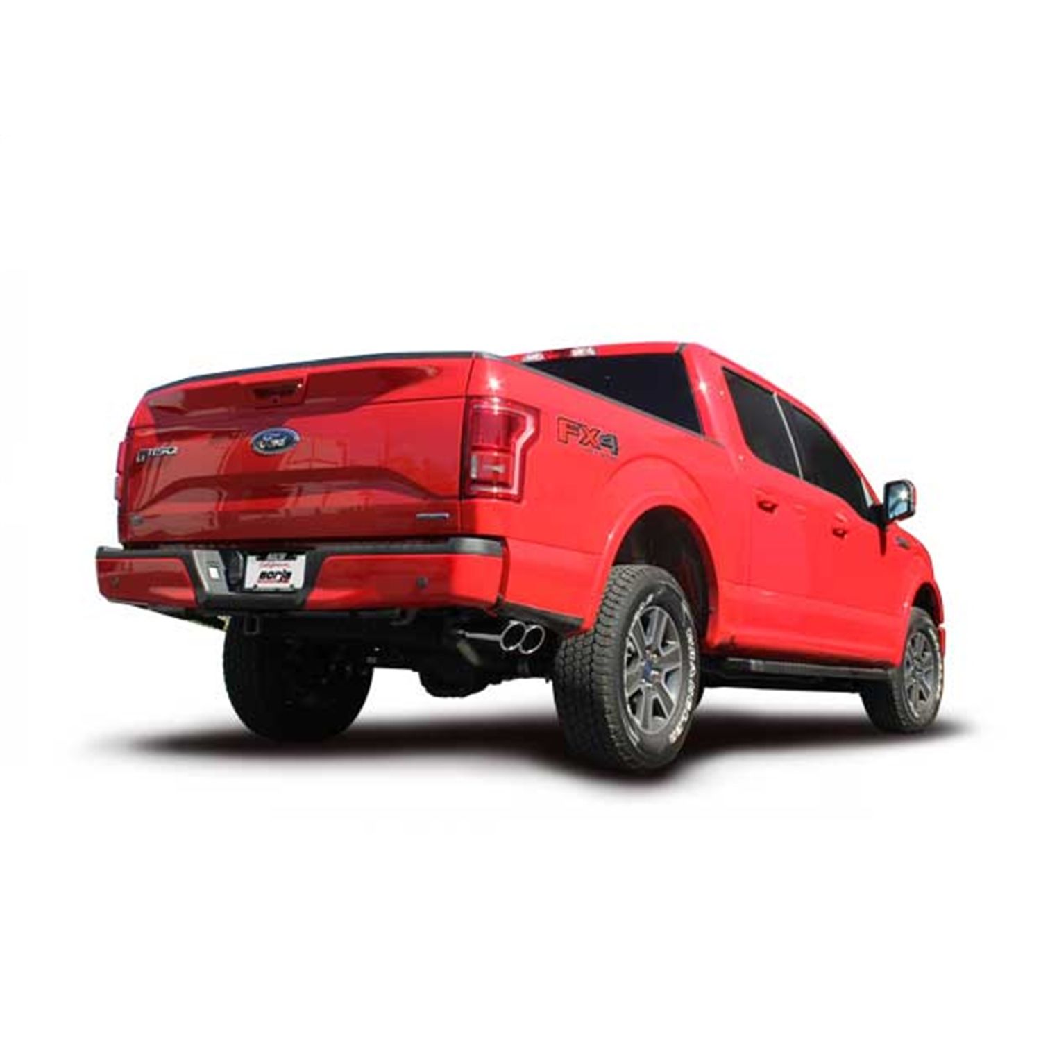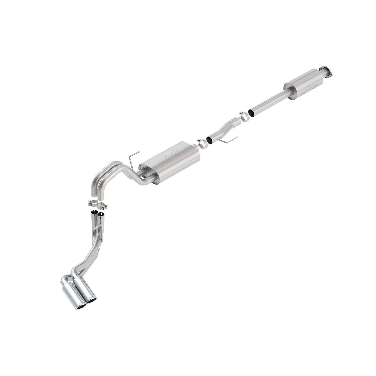 EXCEPT Raptor. Add Adapter 60556 for Crew Cab with Standard Bed (6' 7") 156.8" wheelbase, or Adapter 60564 for Ext. Cab with Long Bed (8' 2") 163.7" wheelbase. This 3" into dual 2.25" system features the classic S-Type sound with no drone inside the vehicle and exits through 4" bright chrome on T-304 stainless steel tips. A system with black chrome on T-304 stainless steel tips is also available. Borla(r) Cat-Back(tm) & Axle-Back exhaust systems feature patented straight-through and multi-core technology designed to unleash hidden horsepower. Increased exhaust velocity adds power, driving excitement, fuel economy, and the distinctive Borla(r) Sound of Power respected by motoring enthusiasts everywhere. Each system is built from premium T-304 stainless steel, superior to T-400 series knockoffs (such as 409), to give you the absolute best in performance and durability. Ultra-smooth mandrel bends ensure maximum flow & power, and precision computer numerical control (CNC) manufacturing ensures an accurate fit. Best of all, Borla(r) stands behind every system with a Million-Mile Warranty. Just what you'd expect from the worlds most experienced (and most winning) exhaust brand.