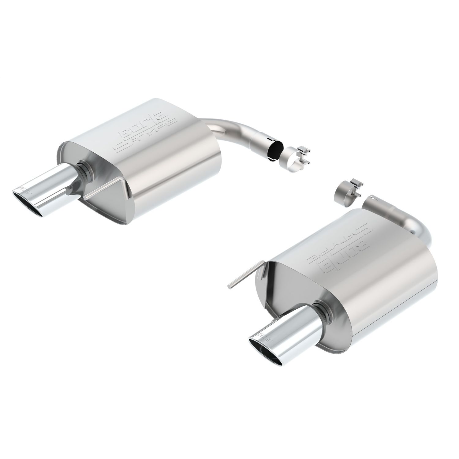 For convertible, EXCEPT vehicles with Active Valve Exhaust (4 tips). Combine with 60560, Front Muffler and 60571 Mid Pipes to create Touring Sound Level on 2.3L or combing 60568 Front Muffler and 60571 Mid Pipes to create Touring Sound Level on 3.7L. Features bright chrome on T-304 stainless steel tips. Borla(r) Cat-Back(tm) & Axle-Back exhaust systems feature patented straight-through and multi-core technology designed to unleash hidden horsepower. Increased exhaust velocity adds power, driving excitement, fuel economy, and the distinctive Borla(r) Sound of Power respected by motoring enthusiasts everywhere. Each system is built from premium T-304 stainless steel, superior to T-400 series knockoffs (such as 409), to give you the absolute best in performance and durability. Ultra-smooth mandrel bends ensure maximum flow & power, and precision computer-controlled CNC manufacturing ensures an accurate fit. Best of all, Borla(r) stands behind every system with a Million-Mile Warranty. Just what you'd expect from the world's most experienced (and most winning) exhaust brand.