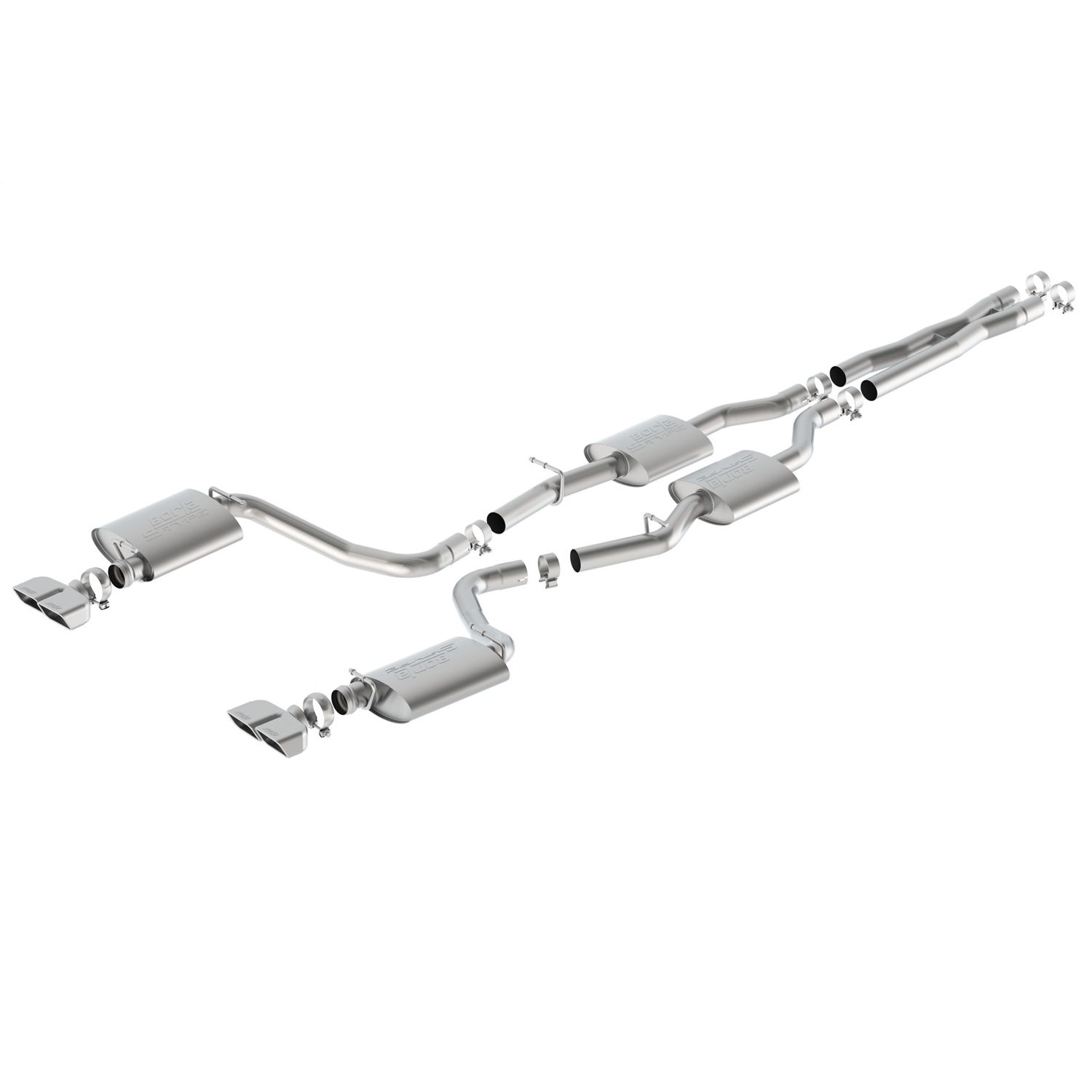 Fits vehicles WITHOUT MDS (Cyl. Deactivation) Valves. This 2.5" diameter Cat-Back™ system contains a Merge X-Pipe for increased performance and improved sound. The system delivers the classic S-Type sound with no drone inside the vehicle. The exhaust exits thru dual 4" x 2.5" rectangle mirror polished T-304 stainless steel tips on each muffler assembly. BORLA® Cat-Back™ & Axle-Back exhaust systems feature patented straight-through and multi-core technology designed to unleash hidden horsepower. Increased exhaust velocity adds power, driving excitement, fuel economy, and the distinctive BORLA® Sound of Power respected by motoring enthusiasts everywhere. Each system is built from premium T-304 stainless steel, superior to T-400 series knockoffs (such as 409), to give you the absolute best in performance and durability. Ultra-smooth mandrel bends ensure maximum flow & power, and precision computer numerical control (CNC) manufacturing ensures an accurate fit. Best of all, BORLA® stands behind every system with a Million-Mile Warranty. Just what you’d expect from the world’s most experienced (and most winning) exhaust brand.