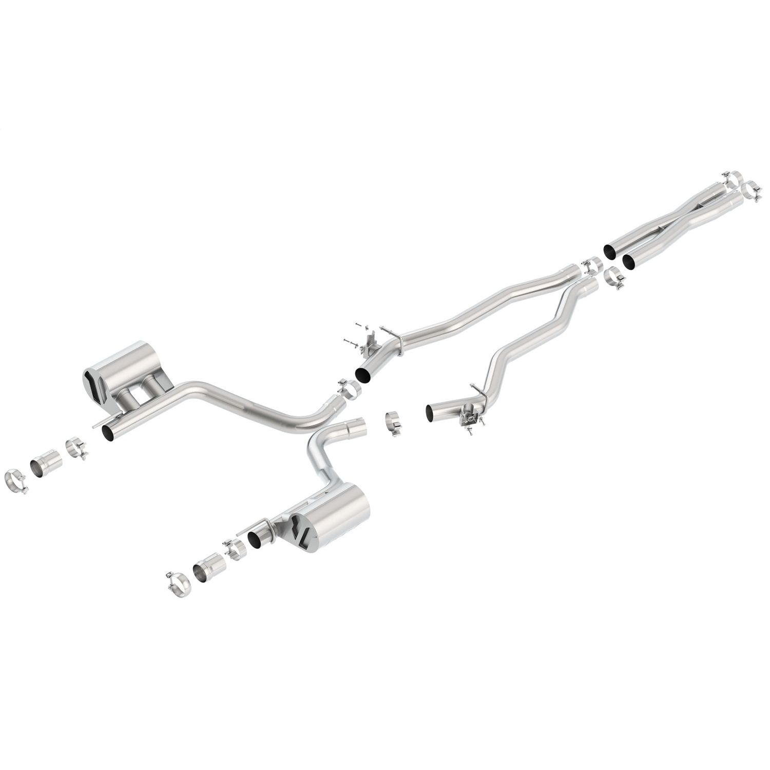 This 2.75" diameter Cat-Back(tm) system features a Merge X-Pipe for increased performance and improved sound. This system is equipped with MDS (multi-displacement system) valve simulators which ELIMINATE the MDS valves. This avoids any warning lights on the dash while providing maximum flow at all times. The system delivers the aggressive ATAK(r) sound with no drone inside the vehicle. Tips NOT included. Use factory valance / tips. BORLA(r) Cat-Back(tm) & Axle-Back exhaust systems feature patented straight-through and multi-core technology to unleash hidden horsepower. Increased exhaust velocity adds power, driving excitement, fuel economy, and the distinctive BORLA(r) Sound of Power respected by motoring enthusiasts everywhere. Each system is built from premium T-304 austenitic stainless steel, superior to T-400 series knockoffs (such as 409), to give you the absolute best in performance and durability. Ultra-smooth mandrel bends ensure maximum flow & power, and precision computer numerical control (CNC) manufacturing ensures an accurate fit. Best of all, BORLA(r) stands behind every system with a Million-Mile Warranty. Just what you’d expect from the world’s most experienced (and most winning) exhaust brand.