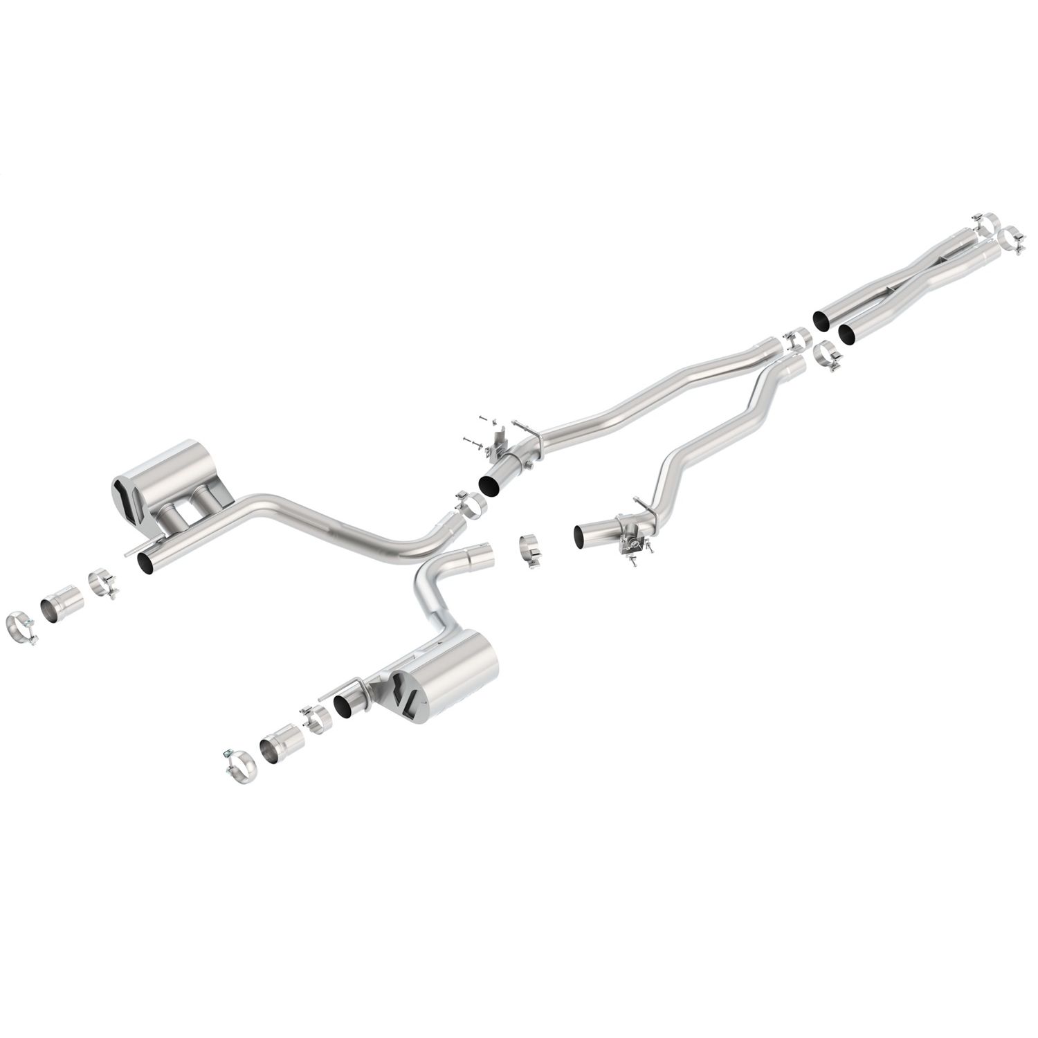 This 2.75" diameter Cat-Back(tm) system features a Merge X-Pipe for increased performance and improved sound. The system delivers the aggressive ATAK(r) sound with no drone inside the vehicle. This system INCLUDES functioning MDS (multi-displacement system) valves. Tips NOT included. Use factory tips / valance. BORLA(r) Cat-Back(tm) & Axle-Back exhaust systems feature patented straight-through and multi-core technology to unleash hidden horsepower. Increased exhaust velocity adds power, driving excitement, fuel economy, and the distinctive BORLA(r) Sound of Power respected by motoring enthusiasts everywhere. Each system is built from premium T-304 austenitic stainless steel, superior to T-400 series knockoffs (such as 409), to give you the absolute best in performance and durability. Ultra-smooth mandrel bends ensure maximum flow & power, and precision computer numerical controlled (CNC) manufacturing ensures an accurate fit. Best of all, BORLA(r) stands behind every system with a Million-Mile Warranty. Just what you’d expect from the world’s most experienced (and most winning) exhaust brand.