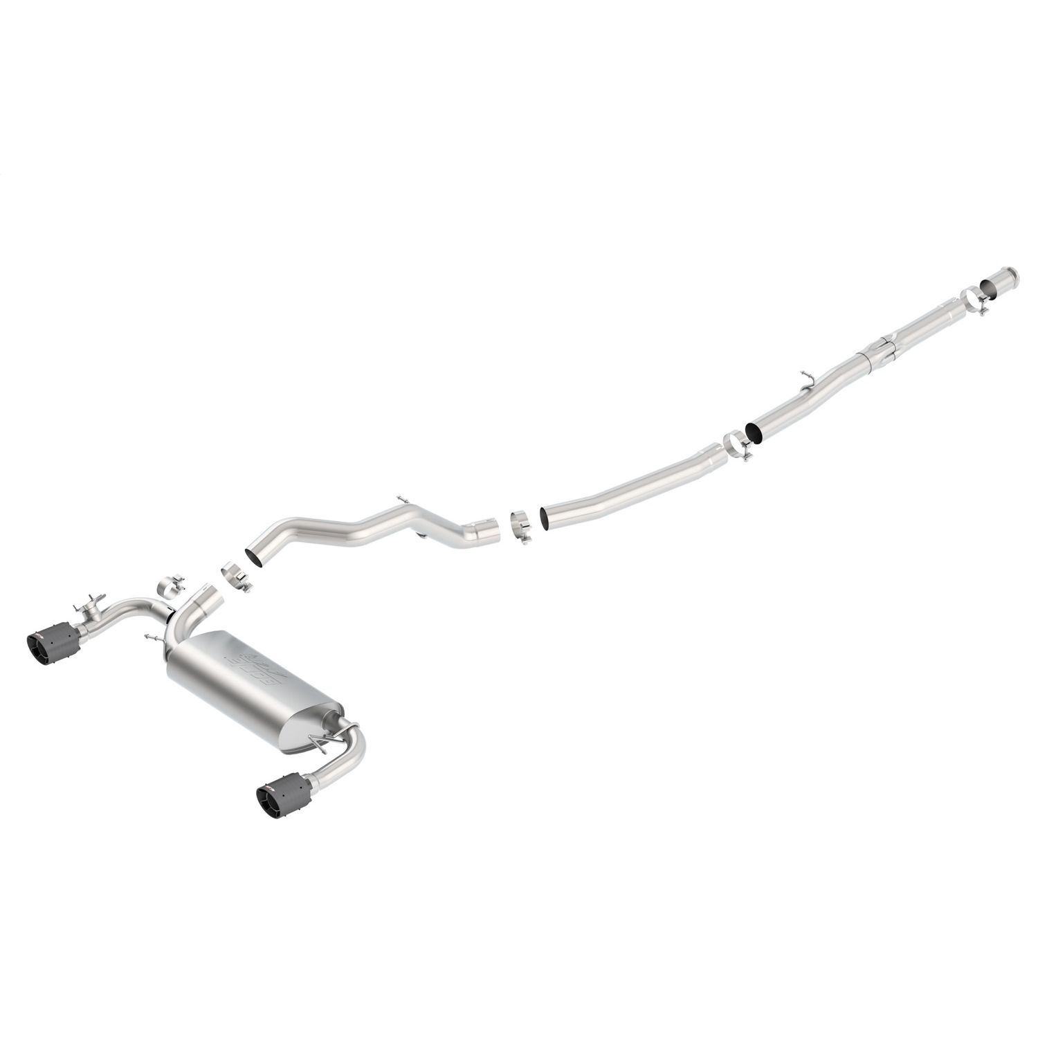 This system is equipped with a "Sound Suppressing Valve" simulator which ELIMINATES the valve. This avoids any warning lights on the dash while providing maximum flow at all times. System features Boryla's Polyphonic Harmonizer Technology which utilizes patented units that contain pipes of different diameters and lengths to create multiple exhaust notes that harmonize to deliver a clean, rich, full-bodied sound to the Borla(r) mufflers. The mufflers then enhance this sound to the character and volume appropriate for our Touring, S-Type and ATAK(r) systems. System also features carbon fiber tips with black anodized centers. Borla(r) Cat-Back(tm) & Axle-Back exhaust systems feature patented straight-through and multi-core technology to unleash hidden horsepower. Increased exhaust velocity adds power, driving excitement, fuel economy, and the distinctive Borla(r) Sound of Power respected by motoring enthusiasts everywhere. Each system is built from premium T-304 austenitic stainless steel, superior to T-400 series knockoffs (such as 409), to give you the absolute best in performance and durability. Ultra-smooth mandrel bends ensure maximum flow & power, and precision computer-controlled CNC manufacturing ensures an accurate fit. Best of all, Borla(r) stands behind every system with a Million-Mile Warranty. Just what you'd expect from the world's most experienced (and most winning) exhaust brand.