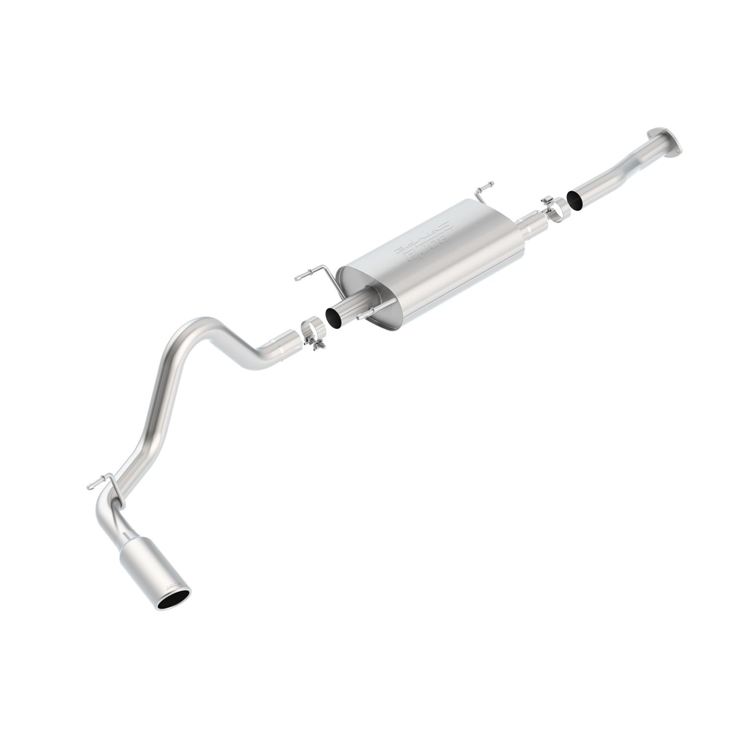 To extend this system to fit the longer Double (Crew) Cab With Long Bed (6' 1") 140.6" Wheelbase models use adapter 60593. This 2.5" diameter BORLA Cat-Back™ system features a 4" round bright chrome on T-304 stainless steel tip. A system with a black chrome on T-304 stainless steel tip, and a High Clearance Climber / Rock Crawler system are also available. The system delivers the classic S-Type sound with no drone inside he vehicle. BORLA Cat-Back™ & Axle-Back exhaust systems feature patented straight-through and multi-core technology designed to unleash hidden horsepower. Increased exhaust velocity adds power, driving excitement, fuel economy, and the distinctive BORLA Sound of Power respected by motoring enthusiasts everywhere. Each system is built from premium T-304 stainless steel, superior to T-400 series knockoffs (such as 409), to give you the absolute best in performance and durability. Ultra-smooth mandrel bends ensure maximum flow & power, and precision computer numerical control (CNC) manufacturing ensures an accurate fit. Best of all, BORLA stands behind every system with a Million-Mile Warranty. Just what you'd expect from the world's most experienced (and most winning) exhaust brand.