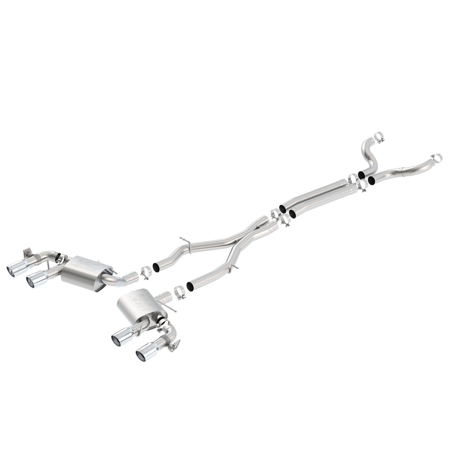 O.E. system NEEDS to be cut to install Borla(r) system. This system has Dual Mode NPP valves and is specifically tuned for use on the ZL1 Camaro. It features an X-Pipe for improved performance, the ATAK(r)sound level, and 4" polished T-304 stainless steel tips. A system with carbon fiber tips is also available. Borla(r) Cat-Back(tm) & Axle-Back exhaust systems feature patented straight-through and multi-core technology designed to unleash hidden horsepower. Increased exhaust velocity adds power, driving excitement, fuel economy, and the distinctive Borla(r) Sound of Power respected by motoring enthusiasts everywhere. Each system is built from premium T-304 stainless steel, superior to T-400 series knockoffs (such as 409), to give you the absolute best in performance and durability. Ultra-smooth mandrel bends ensure maximum flow & power, and precision computer numerical control (CNC) manufacturing ensures an accurate fit. Best of all, Borla(r) stands behind every system with a Million-Mile Warranty. Just what you'd expect from the world's most experienced (and most winning) exhaust brand.