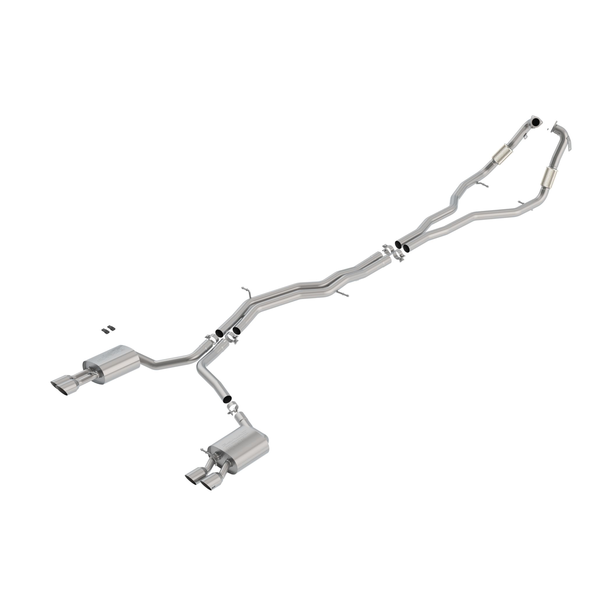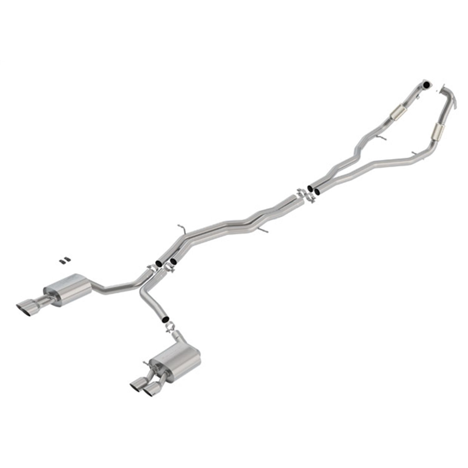 System features a merge X-Pipe for increased performance and improved sound. System includes electronic exhaust valve simulators which ELIMINATE the valve. This avoids any warning lights on the dash while providing maximum flow at all times. System has brushed T-304 stainless steel tips. Borla(r) Cat-Back(tm) & Axle-Back exhaust systems feature patented straight-through and multi-core technology to unleash hidden horsepower. Increased exhaust velocity adds power, driving excitement, fuel economy, and the distinctive Borla(r) Sound of Power respected by motoring enthusiasts everywhere. Each system is built from premium, high-quality T-304 austenitic stainless steel, superior to T-400 series knockoffs (such as 409), to give you the absolute best in performance and durability. Ultra-smooth mandrel bends ensure maximum flow & power, and precision computer-controlled CNC manufacturing ensures an accurate fit. Best of all, Borla(r) stands behind every system with a Million-Mile Warranty. Just what you'd expect from the world's most experienced (and most winning) exhaust brand.
