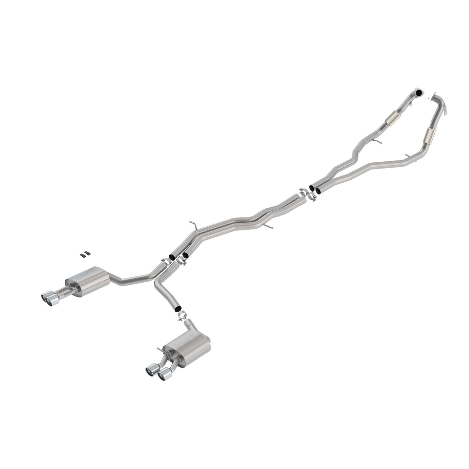 System features a merge X-Pipe for increased performance and improved sound. System includes electronic exhaust valve simulators which ELIMINATE the valves. This avoids any warning lights on the dash while providing maximum flow at all times. System features polished T-304 stainless steel tips. Borla(r) Cat-Back(tm) & Axle-Back exhaust systems feature patented straight-through and multi-core technology to unleash hidden horsepower. Increased exhaust velocity adds power, driving excitement, fuel economy, and the distinctive Borla(r) Sound of Power respected by motoring enthusiasts everywhere. Each system is built from premium, high-quality T-304 austenitic stainless steel, superior to T-400 series knockoffs (such as 409), to give you the absolute best in performance and durability. Ultra-smooth mandrel bends ensure maximum flow & power, and precision computer-controlled CNC manufacturing ensures an accurate fit. Best of all, Borla(r) stands behind every system with a Million-Mile Warranty. Just what you'd expect from the world's most experienced (and most winning) exhaust brand.