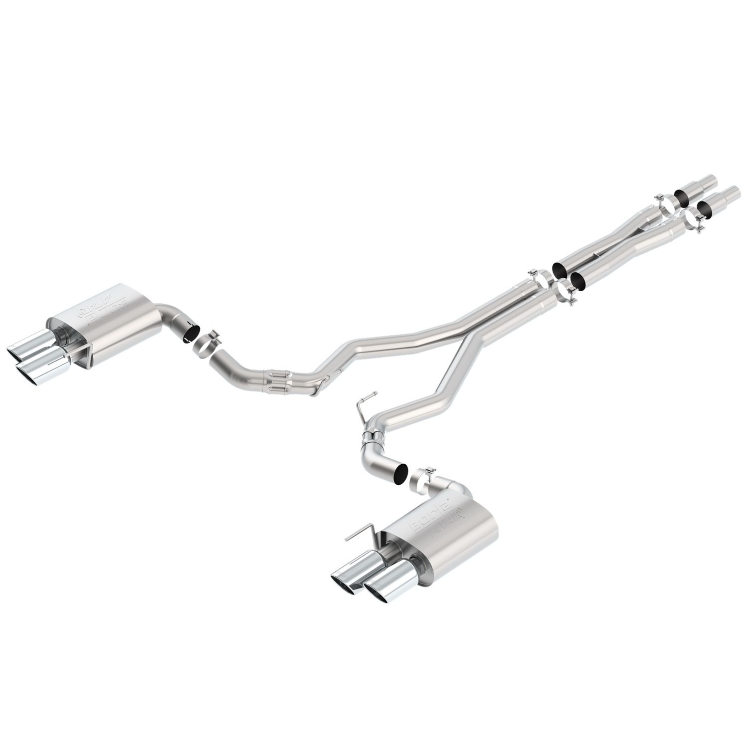 WITHOUT Active valve Exhaust. NOT recommended for use on Convertibles. 3" diameter system. System contains a merge X-Pipe for increased performance and improved sound. System features Borla(r)'s Polyphonic Harmonizer Technology which utilizes patented units that contain pipes of different diameters and lengths to create multiple exhaust notes that harmonize to deliver a clean, rich, full-bodied sound to the Borla(r) mufflers. The mufflers then enhance this sound to the character and volume appropriate for our Touring, S-Type and ATAK(r) systems. This system features bright chrome on T-304 stainless steel tips. Borla(r) Cat-Back(tm) and Axle-Back multi-core technology is designed to unleash hidden horsepower. Increased exhaust velocity adds power, driving excitement, fuel economy, and the distinctive Borla(r) Sound of Power respected by motoring enthusiasts everywhere. Each system is built from premium T-304 stainless steel, superior to T-400 series knockoffs (such as 409), to give you the absolute best in performance and durability. Ultra-smooth mandrel bends ensure maximum flow& power, and precision computer-controlled CNC manufacturing ensures an accurate fit. Best of all, Borla(r) stands behind every system with a Million-Mile Warranty. Just what you'd expect from the world's most experienced (and most winning) exhaust brand.