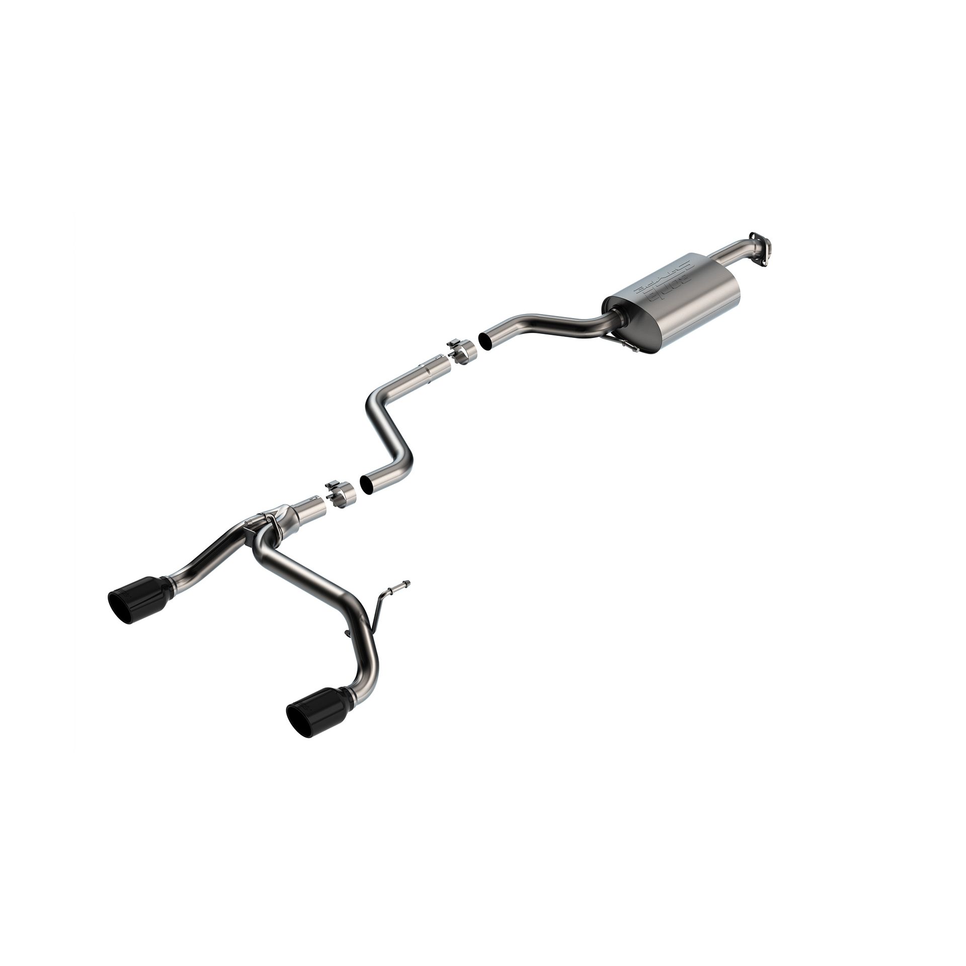 This Vehicle NOT Available In North America. The Borla(r) Cat-Back(tm) system for the Jimny features the classic S-Type sound level and 3.5" black chrome on T-304 stainless steel tips. A system with bright chrome on T-304 stainless steel tips is also available. Borla(r)'s advanced muffler technology delivers great sound outside the vehicle with no drone or resonance inside the vehicle. Borla(r) Cat-Back(tm) & Axle-Back exhaust systems feature patented straight-through and multi-core technology to unleash hidden horsepower. Increased exhaust velocity adds power, driving excitement, fuel economy, and the distinctive Borla(r) Sound of Power respected by motoring enthusiasts everywhere. Each system is built from premium T-304 stainless steel, superior to T-400 series knockoffs (such as 409), to give you the absolute best in performance and durability. Ultra-smooth mandrel bends ensure maximum flow & power, and precision computer numerical control (CNC) manufacturing ensures an accurate fit. Best of all, Borla(r) stands behind every system with a Million-Mile Warranty. Just what you'd expect from the world's most experienced (and most winning) exhaust brand.