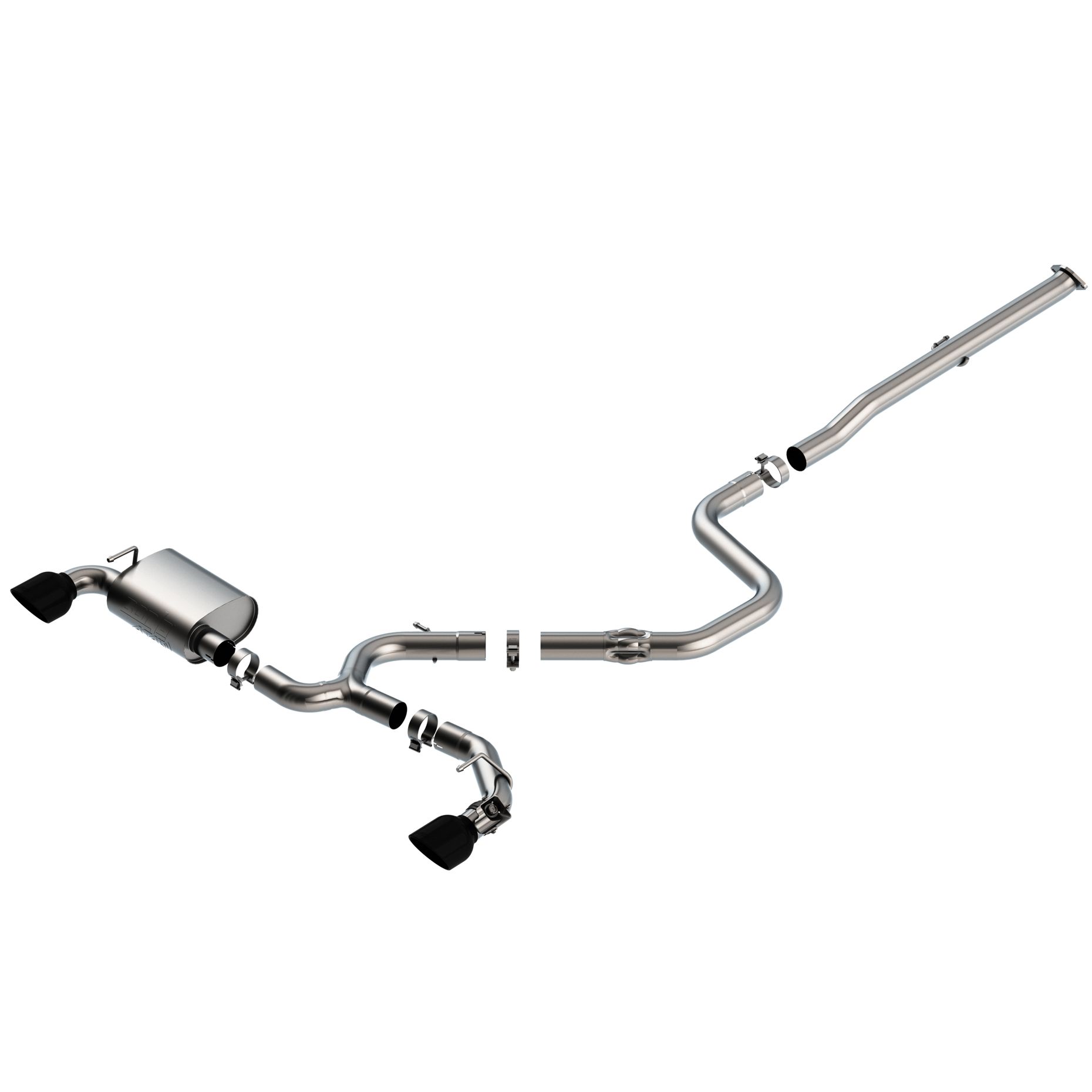 Our 140832BC ATAK(r) Cat-Back(tm) system has been tuned for performance and sound on the Veloster N's 2.0L turbocharged engine. This system contains Borla(r)'s Polyphonic Harmonizer Technology which utilizes patented units that contain pipes of different diameters and lengths to create multiple exhaust notes that harmonize to deliver a clean, rich, full-bodied sound to the Borla(r) mufflers. The mufflers then enhance this sound to the character and volume appropriate for this ATAK(r) system. The ATAK(r) sound level delivers an aggressive, head-turning sound without any drone. The Borla(r) Veloster N Cat-Back(tm) includes a valve to keep the functionality of Hyundai's Variable Exhaust Valve System. This allows you to choose between three modes that alter the sound of our exhaust system. This system features dual 5" black chrome on T-304 stainless steel tips, but is also available with bright chrome on T-304 stainless steel tips. Our Cat-Back(tm) system is made using T-304 stainless steel for increased durability and is backed by our Million-Mile Warranty. Give your Veloster N the sound to match its performance, bolt on a Borla(r)., , System Features:, , 3" Cat-Back(tm) Exhaust System, Dual Black Chrome On T-304 Stainless Steel Tips, Polyphonic Harmonizer Technology, ATAK(r) Sound Level, Valved System (retains factory exhaust modes), No Drone, Bolt-On Installation, Million Mile Warranty, , Each Borla(r) Exhaust System is built from premium T-304 series stainless steel to give you the absolute best in performance and durability. We strive to provide you with the best quality products and stand behind our systems with a Million-Mile Warranty.