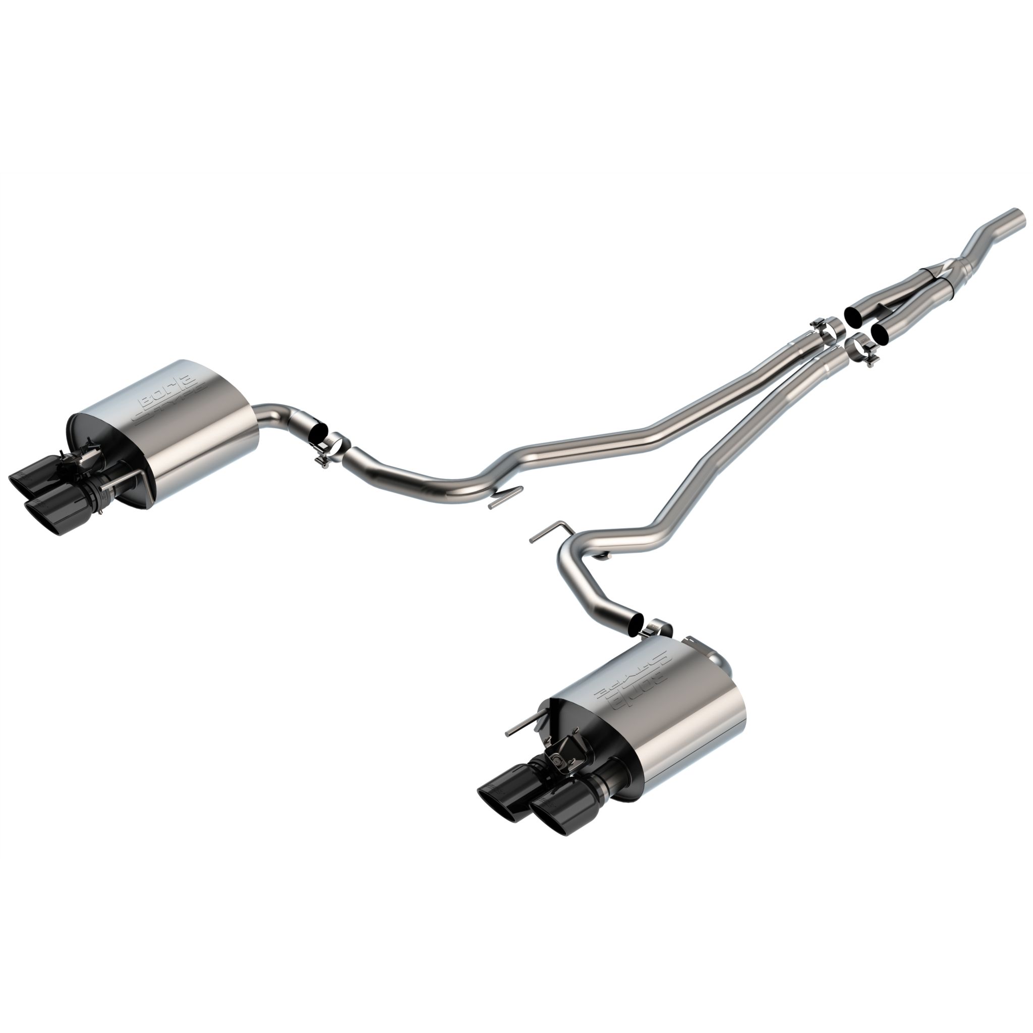 EXCEPT Convertible. BORLA® presents their exhaust systems for the Mustang EcoBoost equipped with Active Exhaust. Our 2.25" diameter Cat-Back™ systems include valves that retain the function of the Active Exhaust allowing you to change the volume of your exhaust by selecting different driving modes. The S-Type sound level delivers an aggressive sound without the drone and is tuned specifically for the 2.3L EcoBoost engine. This system features quad (2 per muffler assembly) 4" round bright chrome on T-304 stainless steel tips, but is also available with black chrome on T-304 stainless steel tips. Cat-Back™ Exhaust System, Active Exhaust Valves, S-Type Sound Level, No-Drone, Bolt-On Installation, 4" Round Bright Chrome On T-304 Stainless Steel Quad Tips, T-304 Stainless Steel Construction. Each BORLA® Exhaust System is built from premium T-304 austenitic stainless steel to give you the absolute best in performance and durability. Ultra-smooth mandrel bends ensure maximum flow & power, and precision computer numerical control (CNC) manufacturing ensures an accurate fit. Best of all, BORLA® stands behind every system with a Million-Mile Warranty. Just what you’d expect from the world’s most experienced (and most winning) exhaust brand.