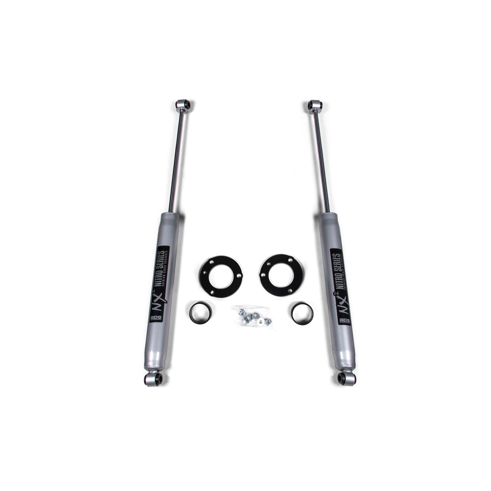 <p>The lift kit includes steel top mount strut spacers, pre-load spacer and custom-tuned NX2 Nitro or FOX Performance series shocks. Give your new Ranger the extra boost with this 2" leveling kit from BDS Suspension.</p>