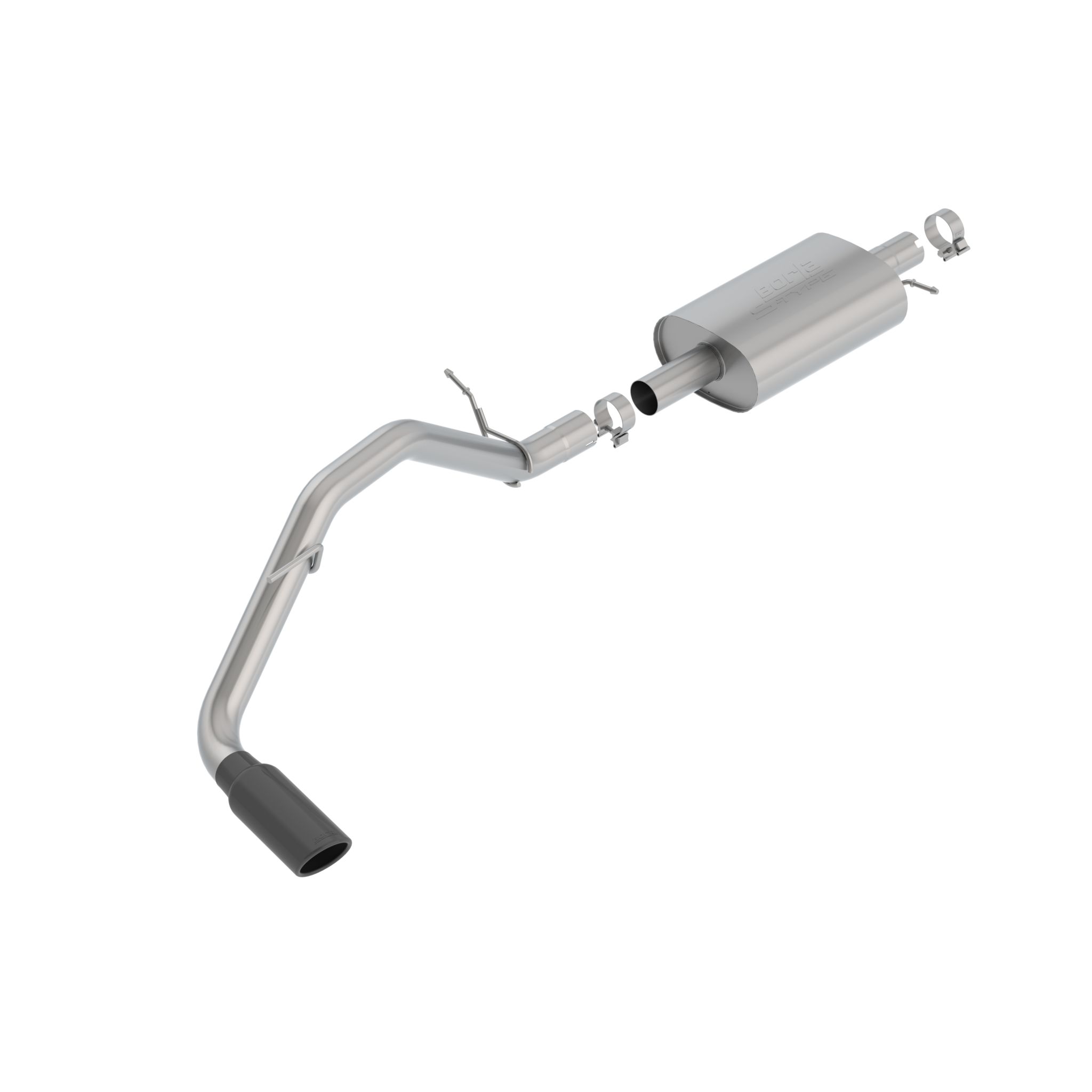 This system features a 4" black chrome on T-304 stainless steel tip. Using Borla(r) Stainless Steel Polish p# 21461 is NOT recommended with these black chrome tips. We suggest cleaning the tips with hot water and a microfiber cloth. Borla(r) Cat-Back(tm) and Axle-Back exhaust systems feature patented straight-through and multi-core technology designed to unleash hidden horsepower. Increased exhaust velocity adds power, driving excitement, fuel economy, and the distinctive Borla(r) Sound of Power respected by motoring enthusiasts everywhere. Each system is built from premium T-304 stainless steel, superior to T-400 series knockoffs (such as 409), to give you the absolute best in performance and durability. Ultra-smooth mandrel bends ensure maximum flow& power, and precision computer numerical control (CNC) manufacturing ensures an accurate fit. Best of all, Borla(r) stands behind every system with a Million-Mile Warranty. Just what you'd expect from the world's most experienced (and most winning) exhaust brand.