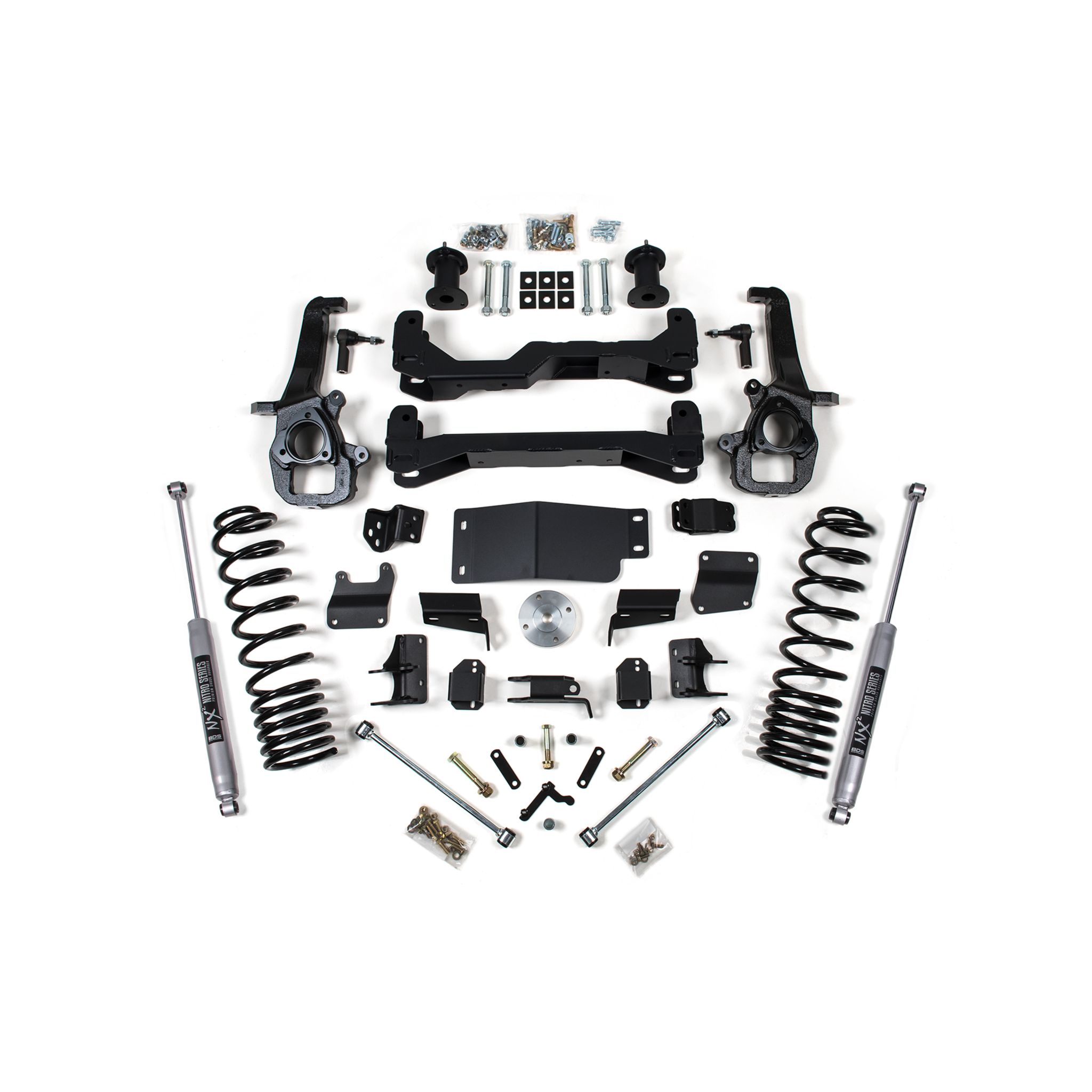 <p>BDS steps up the performance and capability of the 2019-2024 RAM 1500 trucks with a 4-inch suspension lift kit. Designed to improve stance, performance, and capability, this kit includes everything necessary to set your truck up right with clearance for up to 35" tires</p><p>This kit takes advantage of BDS's tried and true high-clearance design for improved ground clearance, strength, and offroad protection while correcting suspension and steering geometry for great on-road handling characteristics. Up front, the kit utilizes top mounted strut spacers, high-arched 1/4-inch thick steel crossmembers along with a multipiece differential relocation brackets and heavy duty skid plates built for offroad protection. Steering geometry is corrected at the new taller ride height with CNC-machined ductile iron steering knuckles and replacement tie rod ends allowing for ESC system compatibility. These combined with the provided sway bar drops, bump stop extensions, stainless steel braided brake lines, CV spacers, supplied hardware and more provide a comprehensive front suspension lift ready for whatever you throw at it.</p><p>In the rear this kit utilizes progressive rate Pro-Ride coil springs, rear upper control arm relocation brackets to correct pinion angle, track bar relocation bracket to correct axle positioning, bump stop extensions, and sway bar links. The rear of these kits are rounded out with your choice of specially tuned NX2 nitro series gas shocks or FOX 2.0 IFP performance series gas shocks to offer improved damper performance.</p><h2>High Clearance Crossmembers</h2><p>BDS maximizes ground clearance with their heavy duty 1/4-inch thick laser cut perfect fit crossmembers. Paired with a front skid plate system that bolts together to create a rigid subframe while adding extra protection.</p><h2>Heavy Duty Steering Knuckles</h2><p>BDS corrects steering geometry at the new taller ride height using a pair of high-strength, CNC machined ductile cast iron steering knuc