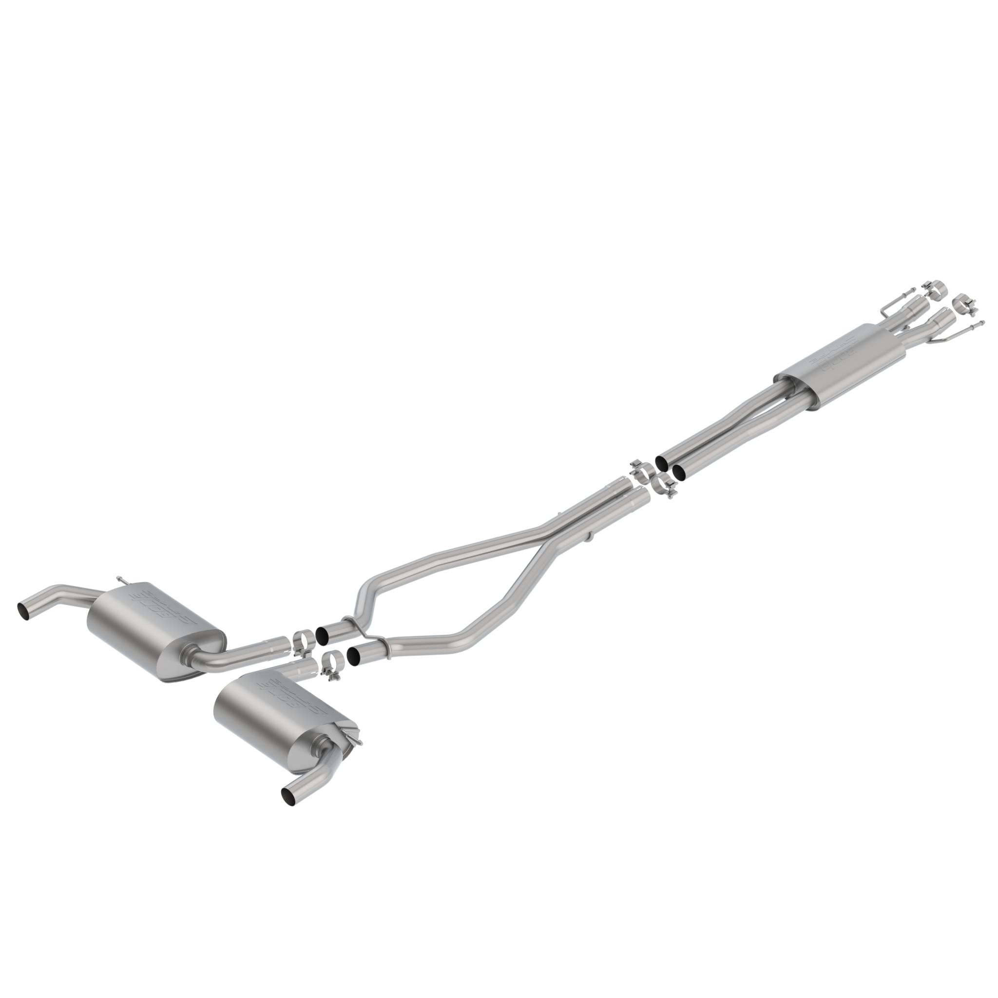 Tips NOT included. Use factory valance tips. This 2.25" diameter system is designed specifically for the Ford Edge ST. Borla(r) Cat-Back(tm) and Axle-Back exhaust systems feature patented straight-through and multi-core technology is designed to unleash hidden horsepower. Increased exhaust velocity adds power, driving excitement, fuel economy, and the distinctive Borla(r) Sound of Power respected by motoring enthusiasts everywhere. Each system is built from premium T-304 stainless steel, superior to T-400 series knockoffs (such as 409), to give you the absolute best in performance and durability. Ultra-smooth mandrel bends ensure maximum flow& power, and precision computer numerical control (CNC) manufacturing ensures an accurate fit. Best of all, Borla(r) stands behind every system with a Million-Mile Warranty. Just what you'd expect from the world's most experienced (and most winning) exhaust brand.