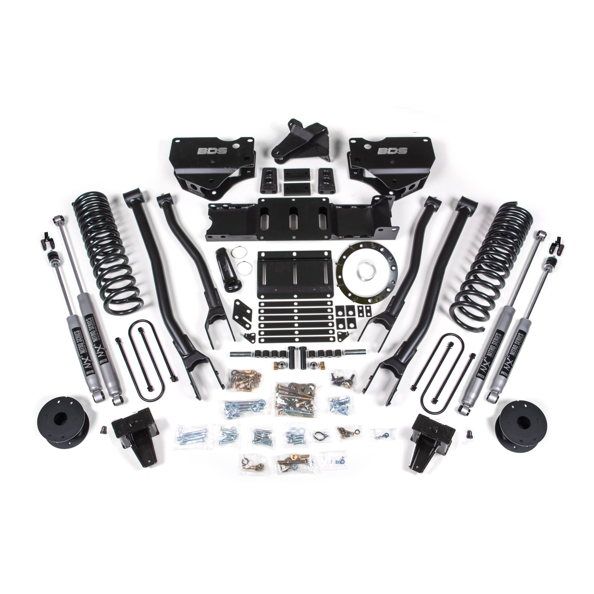 <p>Up the ante of your RAM 3500 diesel truck equipped with factory rear air ride to the next level with this 6-inch 4-Link lift kit from BDS. Designed to improve stance, performance, and capability, this kit includes everything necessary to set your truck up right with clearance for up to 37" tires.</p>