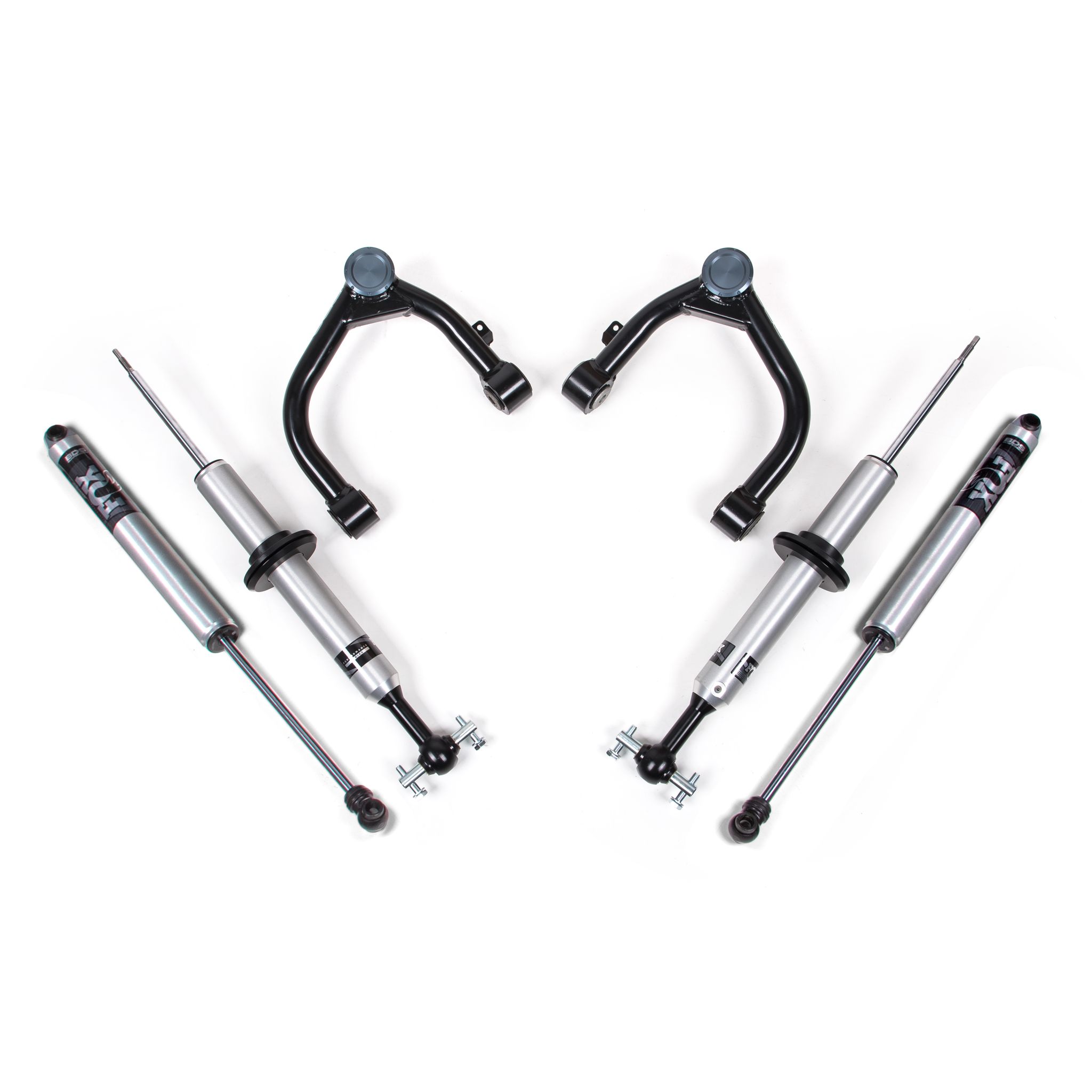 <p>Up front, the lift kit includes FOX 2.0 Performance Series strut shocks and heavy-duty tubular upper control arms for increased strength. In the rear, this kit utilizes a matching set of FOX 2.0 Performance shocks for the smoothest ride.</p>