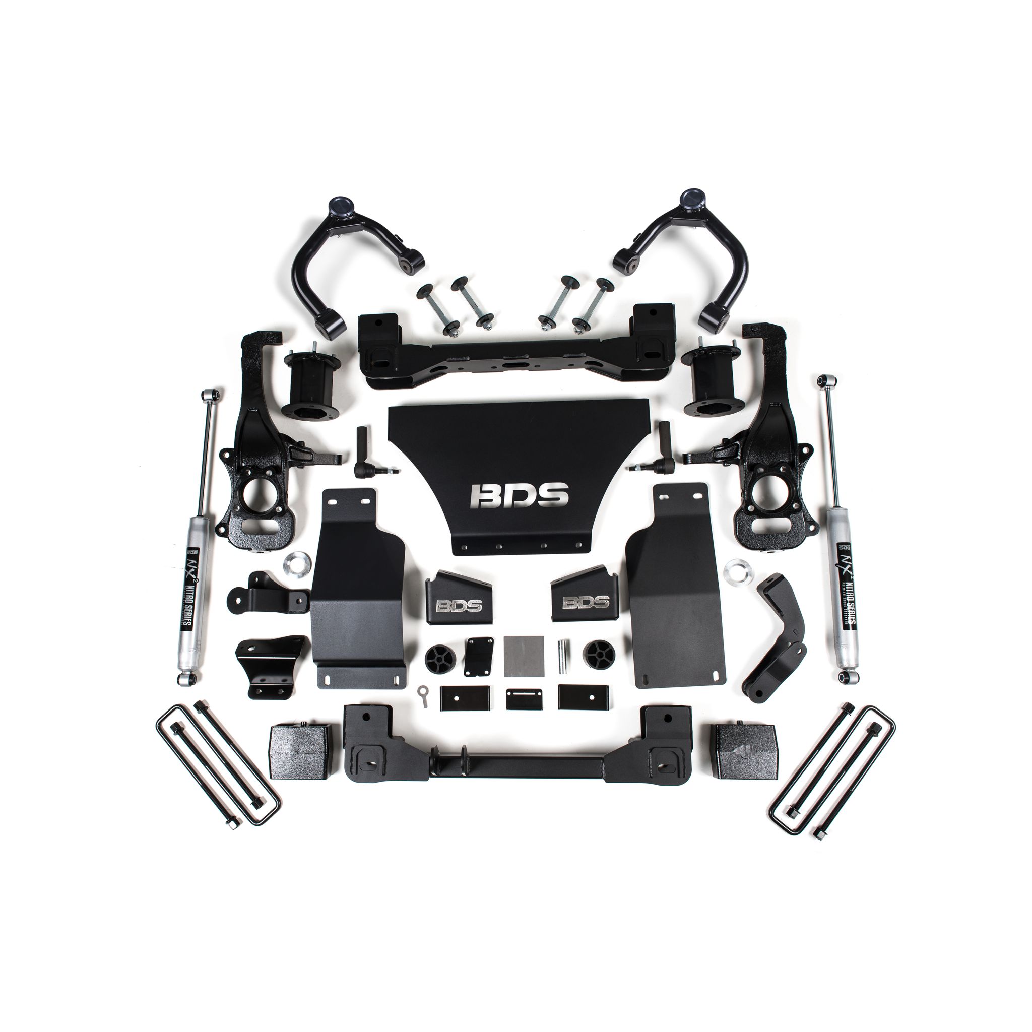 <p>BDS steps up the performance and capability of the Chevy Silverado and GMC Sierra 1500 trucks with 6-inch suspension lift kit. Designed to improve stance, performance, and capability, this kit includes everything necessary to set your truck up right with clearance for up to 35" tires</p>