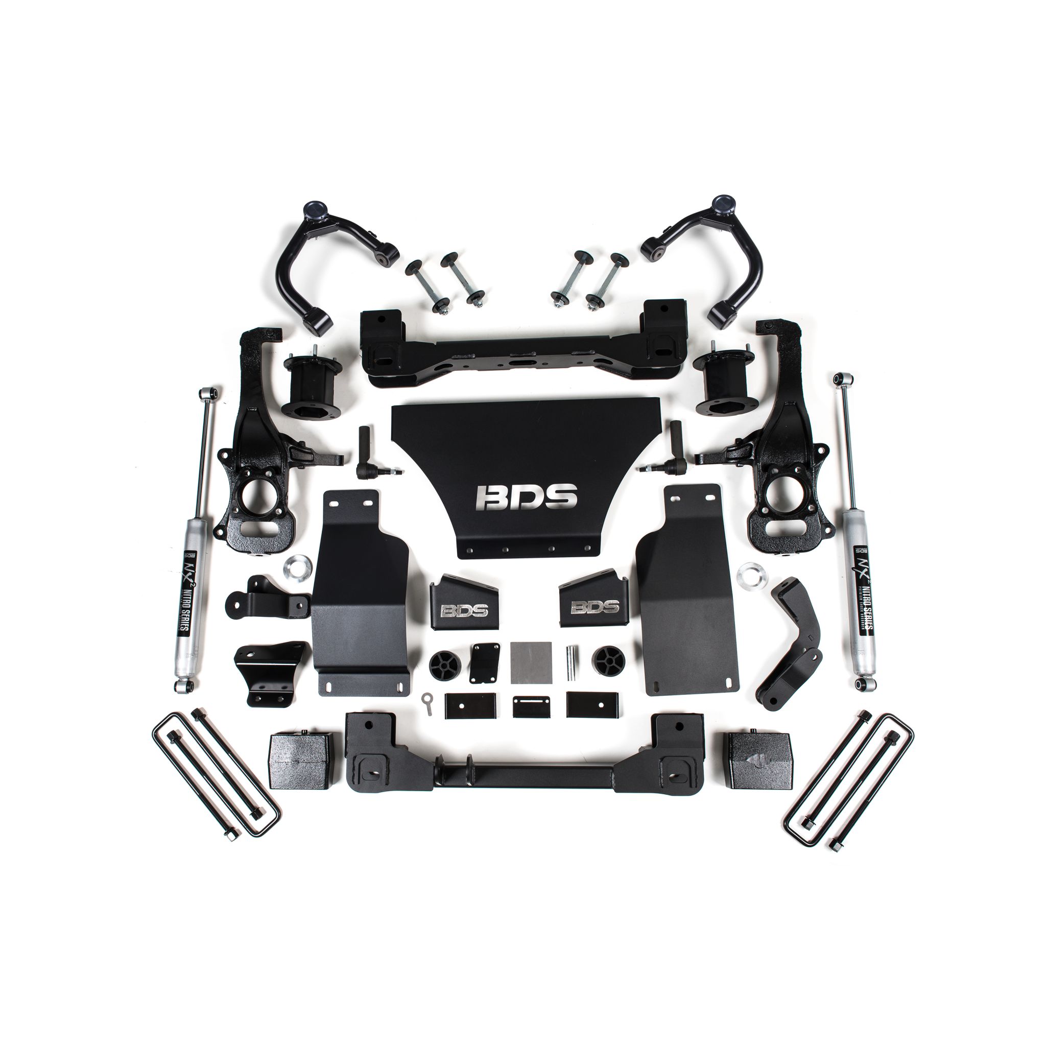 <p>Take your Chevy Trail Boss and GMC AT4 1500 truck to the next level with 4-inch suspension lift kit by BDS. Designed to improve stance, performance, and capability, this kit includes everything necessary to set your truck up right with clearance for up to 35" tires.</p>