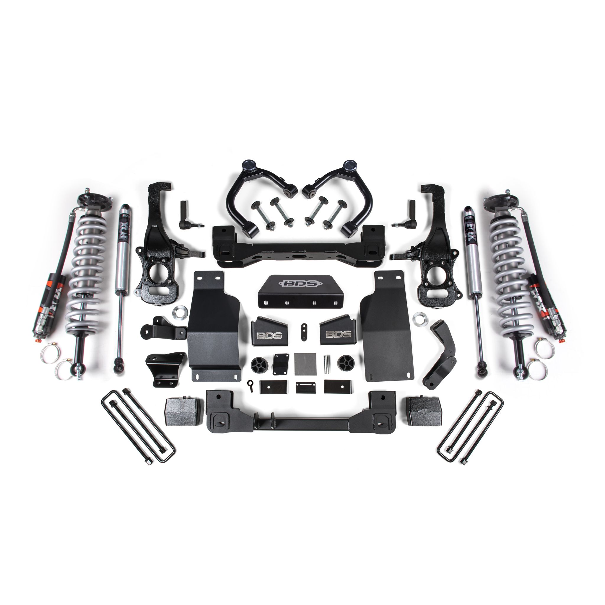 <p>This kit takes advantage of BDS's tried and true high-clearance design for improved ground clearance, strength, and offroad protection while correcting suspension and steering geometry for great on-road handling characteristics. Up front, the kit utilizes top mounted strut spacers, upper control arms, high-arched 1/4-inch thick steel crossmembers along with a multipiece differential relocation brackets and heavy duty skid plates built for offroad protection. Steering geometry is corrected at the new taller ride height with CNC-machined ductile iron steering knuckles and replacement tie rod ends allowing for ESC system compatibility. These combined with the provided sway bar drops, bump stop extensions, brake line brackets, CV spacers, supplied hardware and more provide a comprehensive front suspension lift ready for whatever you throw at it.</p>