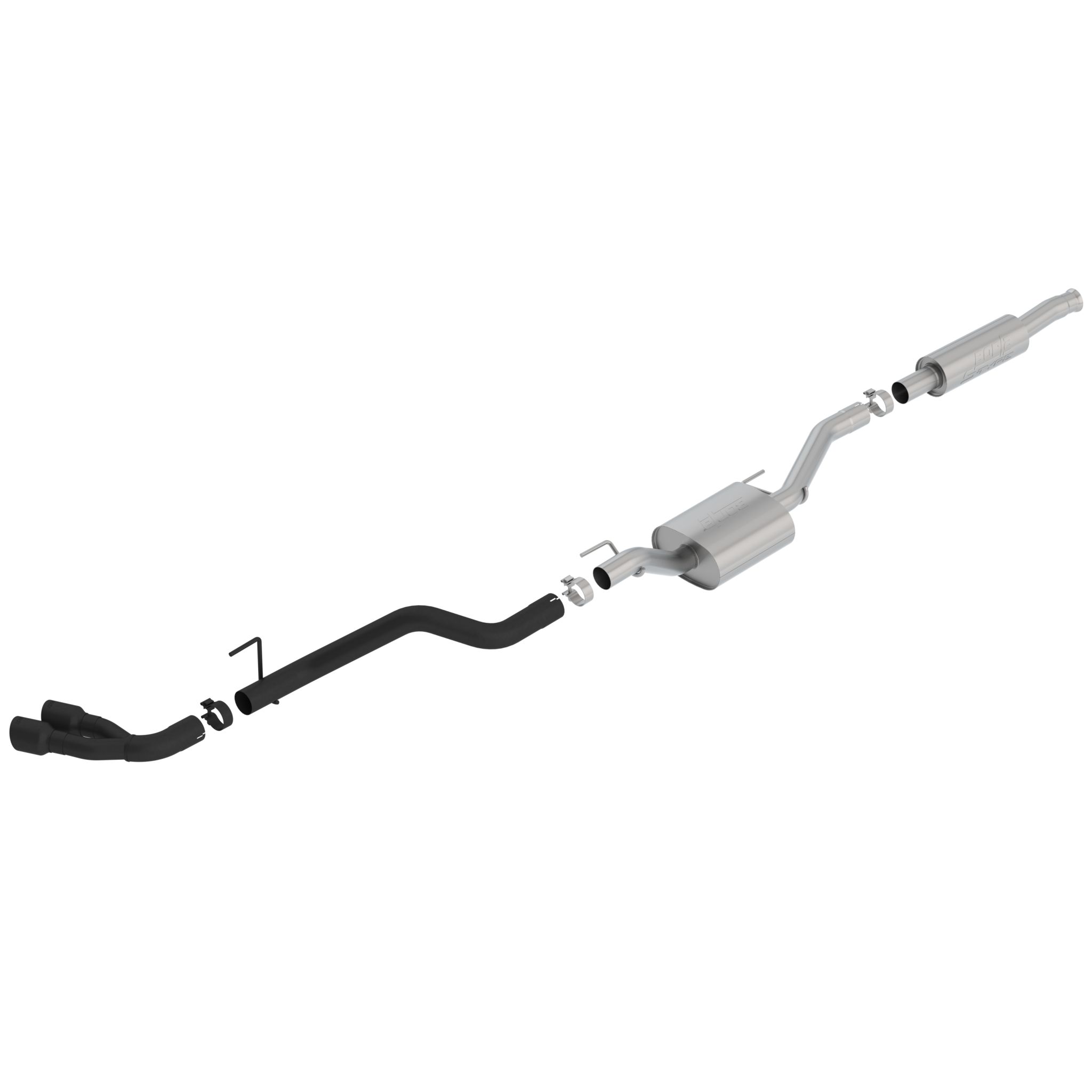 This 2.75" diameter Borla(r) Cat-Back(tm) system is specifically tuned for flow and sound on the Gladiator's 3.6L Pentastar engine. Positioned between the Touring and the ATAK(r), the classic S-Type delivers a noticeable increase in sound and overall volume without being intrusive. As expected, the system is drone-free to ensure an enjoyable ride inside the vehicle. This single side exit system features a black coated T-304 stainless steel tailpipe with dual outlet 3.5" black tips. A system with an uncoated tail pipe and dual outlet 3.5" tip is also available. The T-304 austenitic stainless steel construction provides an increase in durability. Choose how you want to be heard and bolt on a Borla(r). Borla(r) exhaust systems are covered under our Million-Mile warranty with the following exceptions. Borla(r) will warranty black coatings, tip finishes, and carbon fiber parts for one year.
