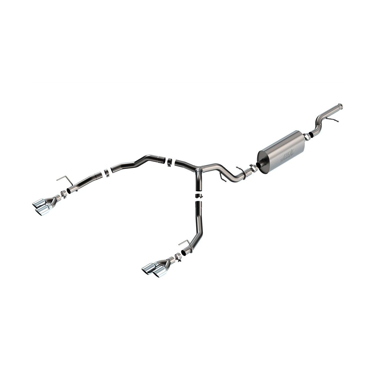 Fits models with Quad Tips (2 tips each side) ONLY. This 3" into dual 2.75" diameter BORLA® Cat-Back™ system was specifically designed to enhance the power and sound of the Chevrolet Tahoe equipped with the 5.3L engine. This system features the mellow Touring sound with no drone inside the vehicle. Split rear exit with dual 4" round bright chrome on T-304 stainless steel tips on each side provide a custom appearance for your Tahoe. Systems with black chrome on T-304 stainless steel tips, and carbon fiber tips are also available. Increased exhaust velocity adds power, driving excitement, fuel economy, and the distinctive BORLA® Sound of Power respected by motoring enthusiasts everywhere. Each system is built from premium T-304 stainless steel, superior to T-400 series knockoffs (such as 409), to give you the absolute best in performance and durability. Ultra-smooth mandrel bends ensure maximum flow & power, and precision computer numerical control (CNC) manufacturing ensures an accurate fit. Best of all, BORLA® stands behind every system with a Million-Mile Warranty. Just what you'd expect from the world's most experienced (and most winning) exhaust brand.