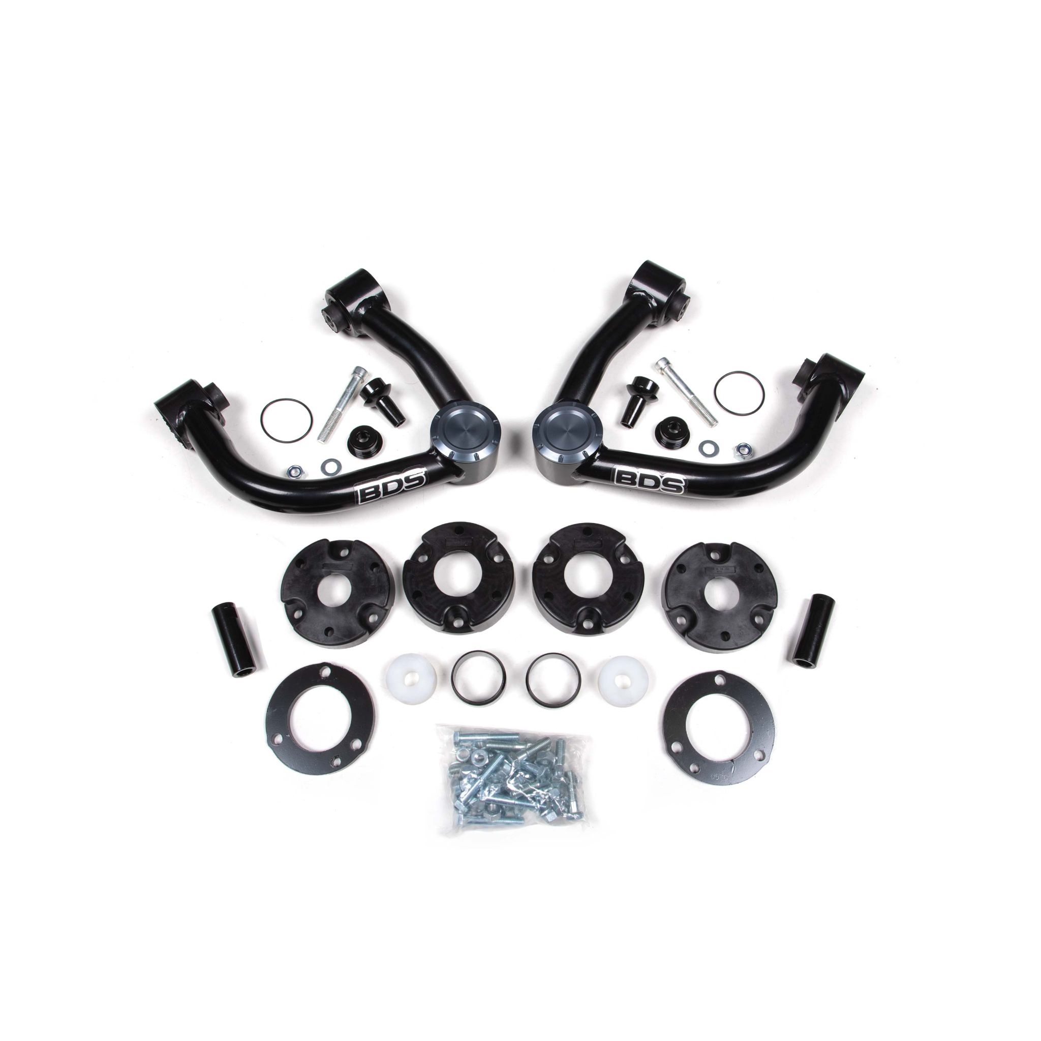 <div style="margin-top: 0.5em; margin-bottom: 0.5em;">Built to outperform, upgrade your 2021-2025 Ford Bronco with this 3-inch lift kit from BDS Suspension. Designed to improve stance, performance, and capability, this kit includes everything necessary to set your truck up right with clearance for up to 35" tires. To provide a full solution for your Bronco, a pair of heavy-duty tie rod reinforcement sleeves is also included to ensure peace of mind while you're pushing your Bronco to the limit out on the trail.</div><div style="margin-top: 0.5em; margin-bottom: 0.5em;">This 3-inch lift kit is engineered for additional tire clearance and improved performance without overextending the suspension or driveline angles at full suspension droop. To prevent maxing out ball joints or CV damage, BDS addresses this issue with a small pre-load spacer and a top spacer, allowing for proper height adjustment.</div><h2 style="margin-top: 1em; margin-bottom: 0.5em;">HD Upper Control Arms</h2><div style="margin-top: 0.5em; margin-bottom: 0.5em;">Built for strength, performance, and increased travel, these upper control arms are ready to bolt in with most leveled/lifted trucks. They use 1.5" OD x .120-wall tubular construction with an indexed ball joint cup to correct the ball joint positioning, allowing additional down travel and camber adjustment. At the frame mounting ends, durometer-specific rubber bushings provide maintenance-free operation, while at the other end, high-quality FK uniball joints allow for maximum travel. Arms are finished in a durable black powder coat with a billet aluminum dust cap, ready for installation right out of the box.</div>