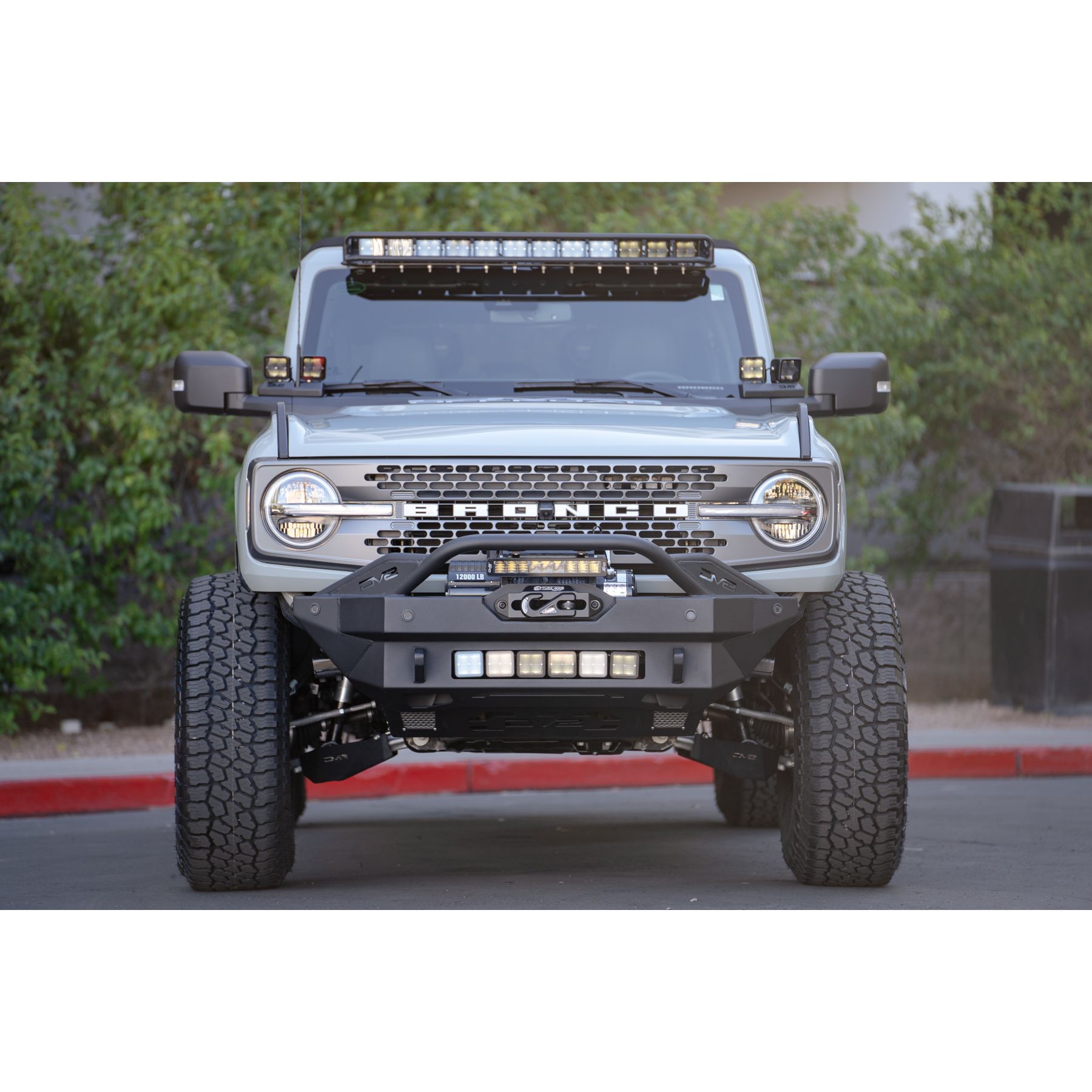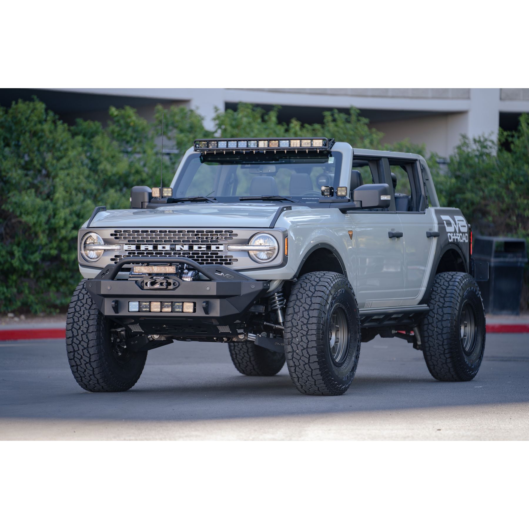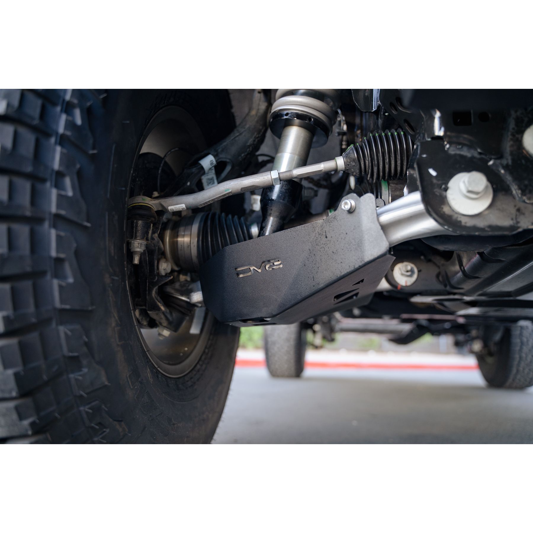 DV8 Offroad's A-Arm Skid Plate for the 2021+ Bronco was designed to protect the aluminum front, lower control arms from rocks and other obstacles on the trail. Made from 3.5mm steel and finished in a micro-texture black powder coat, it also shields the vulnerable shock bolts from damage.These skid plates have an easy bolt-on installation and are compatible with all Bronco trims, including Sasquatch & non-Sasquatch package equipped vehicles.