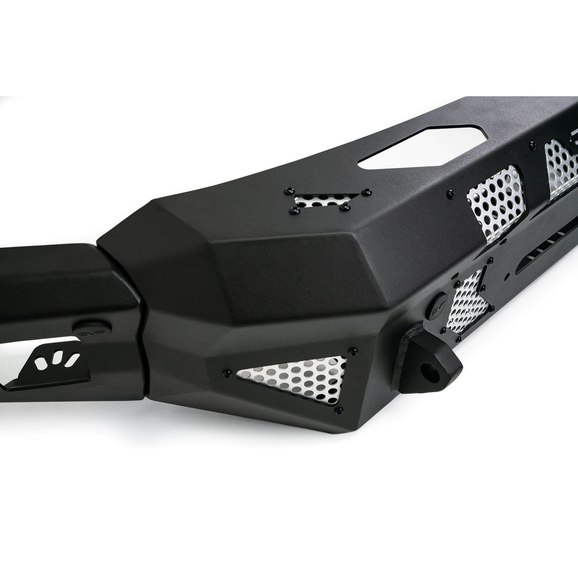 The MTO Series (Made to Overland) Front Bumper for the 2021+ F-150 features a winch mount that sits inside the bumper, and has access holes on top to reach the winch switch. It can handle up to a 12,000 lb winch. There are two mounting points for 3/4-inch D-ring shackles to provide additional recovery options. Sensor hole mounts accommodate the factory parking sensors.?At each side of the bumper are mounting points for 3-inch pod lights. The optional MTO Series Universal Bull Bar can be installed on top of the bumper, which mounts a 13-inch single row LED light bar. If your F-150 is equipped with Adaptive Cruise Control, it will need to be relocated in order to retain adaptive cruise functionality.