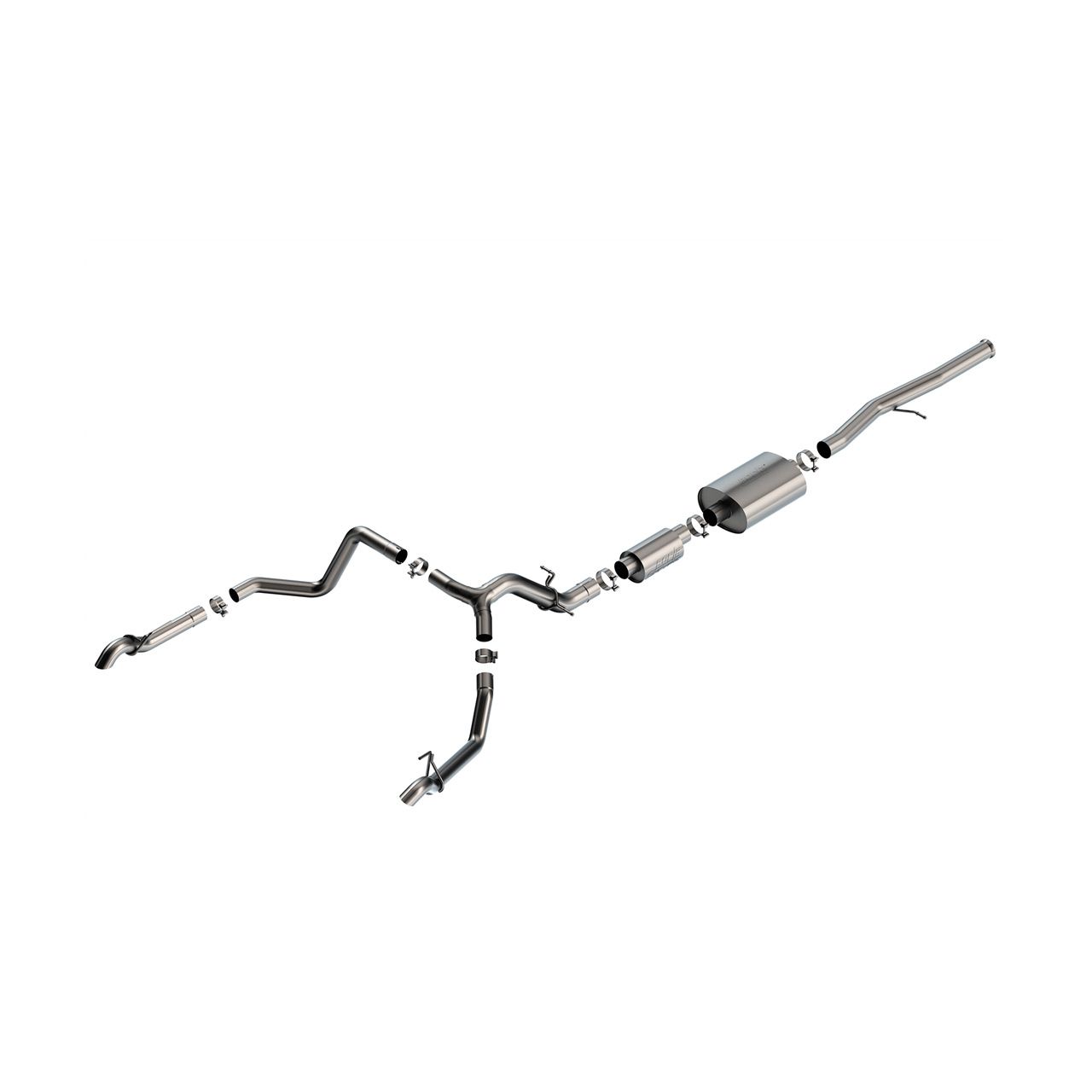 This system was designed specifically for the 6.2L Silverado 1500 ZR2 and Sierra 1500 AT4X . The 3.5" diameter Cat-Back(tm) system has dual 2.75" turn down tail pipes and features the classic Borla(r) S-Type sound level with no drone inside the vehicle. Replace the small muffler behind the primary muffler in the Borla(r) "S-Type" system with Polyphonic Harmonizer 60680 to attain the "ATAK(r)" sound level (louder than "S-Type"). Optional "True Dual" Cat-Back(tm) system available. Borla(r) Cat-Back(tm) & Axle-Back exhaust systems feature patented straight-through and multi-core technology to unleash hidden horsepower. Increased exhaust velocity adds power, driving excitement, fuel economy, and the distinctive Borla(r) Sound of Power respected by motoring enthusiasts everywhere. Each system is built from premium T-304 austenitic stainless steel, superior to T-400 series knockoffs (such as 409), to give you the absolute best in performance and durability. Ultra-smooth mandrel bends ensure maximum flow & power, and precision computer numerical control (CNC) manufacturing ensures an accurate fit. Give your ZR2 or AT4X the sound it deserves, bolt on a Borla(r). Best of all, Borla(r) stands behind every system with a Million-Mile Warranty. Just what you'd expect from the world's most experienced (and most winning) exhaust brand.
