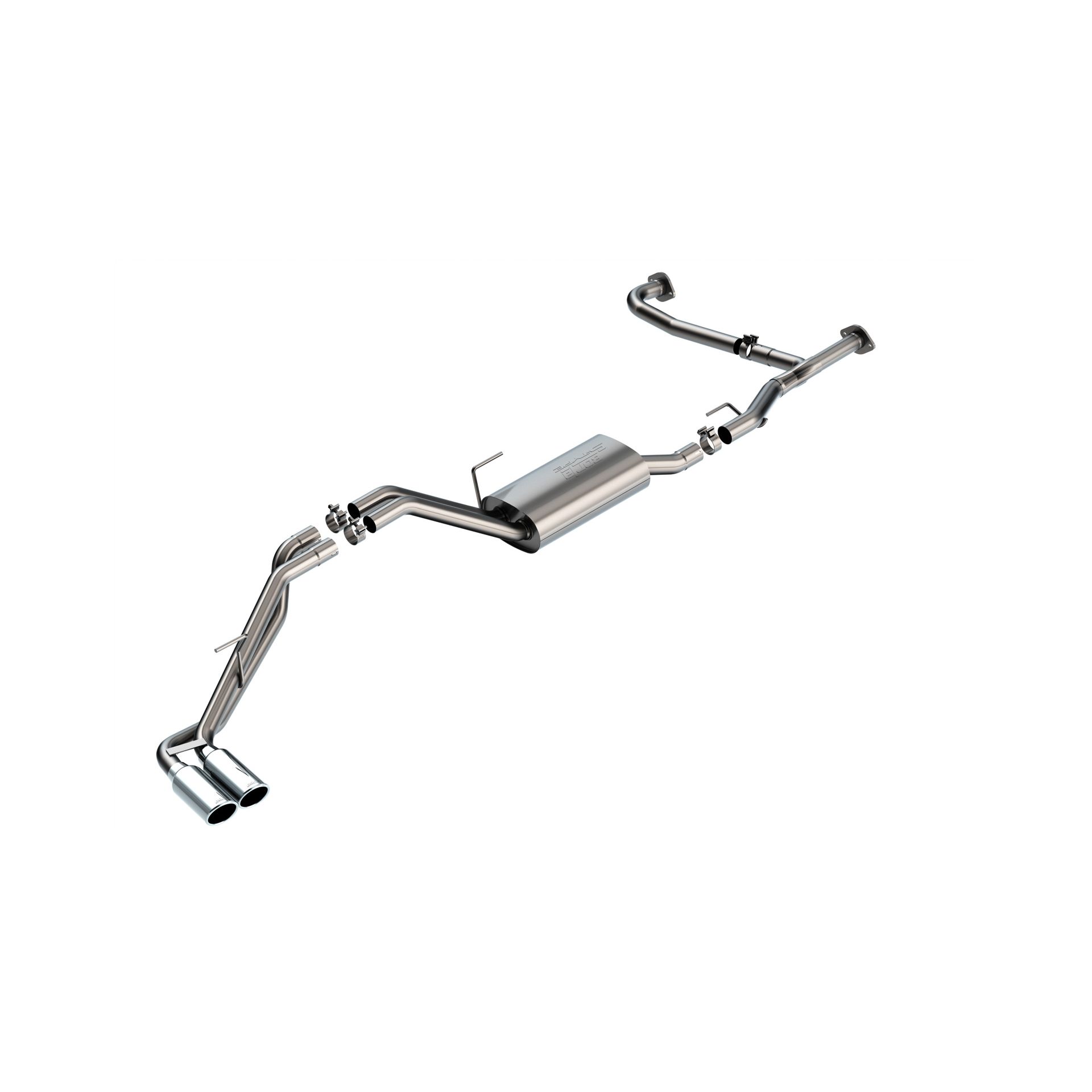 This 2.5"diameter into dual 2.25" BORLA® Cat-Back™ system was specifically designed to enhance the power and sound of the Frontier equipped with 3.8L engine. The system delivers the classic S-Type sound that gives you a powerful performance sound with no drone. It features 2 full Tail Pipes (Not a single tail pipe with dual tips) with single 4" round bright chrome on T-304 stainless steel tips on each tail pipe and a dual side exit configuration. A system is also available with black chrome on T-304 stainless steel tips. Dual Tail Pipes. BORLA® Cat-Back™ & Axle-Back exhaust systems feature patented straight-through and multi-core technology to unleash hidden horsepower. Increased exhaust velocity adds power, driving excitement, fuel economy, and the distinctive BORLA® Sound of Power respected by motoring enthusiasts everywhere. Each system is built from premium, high-quality T-304 austenitic stainless steel, superior to T-400 series knockoffs (such as 409), to give you the absolute best in performance and durability. The entire system is made of T-304 stainless steel and utilizes computer numerical control (CNC) manufacturing techniques that ensure an accurate fit. All this is backed by our unsurpassed Million Mile Warranty.