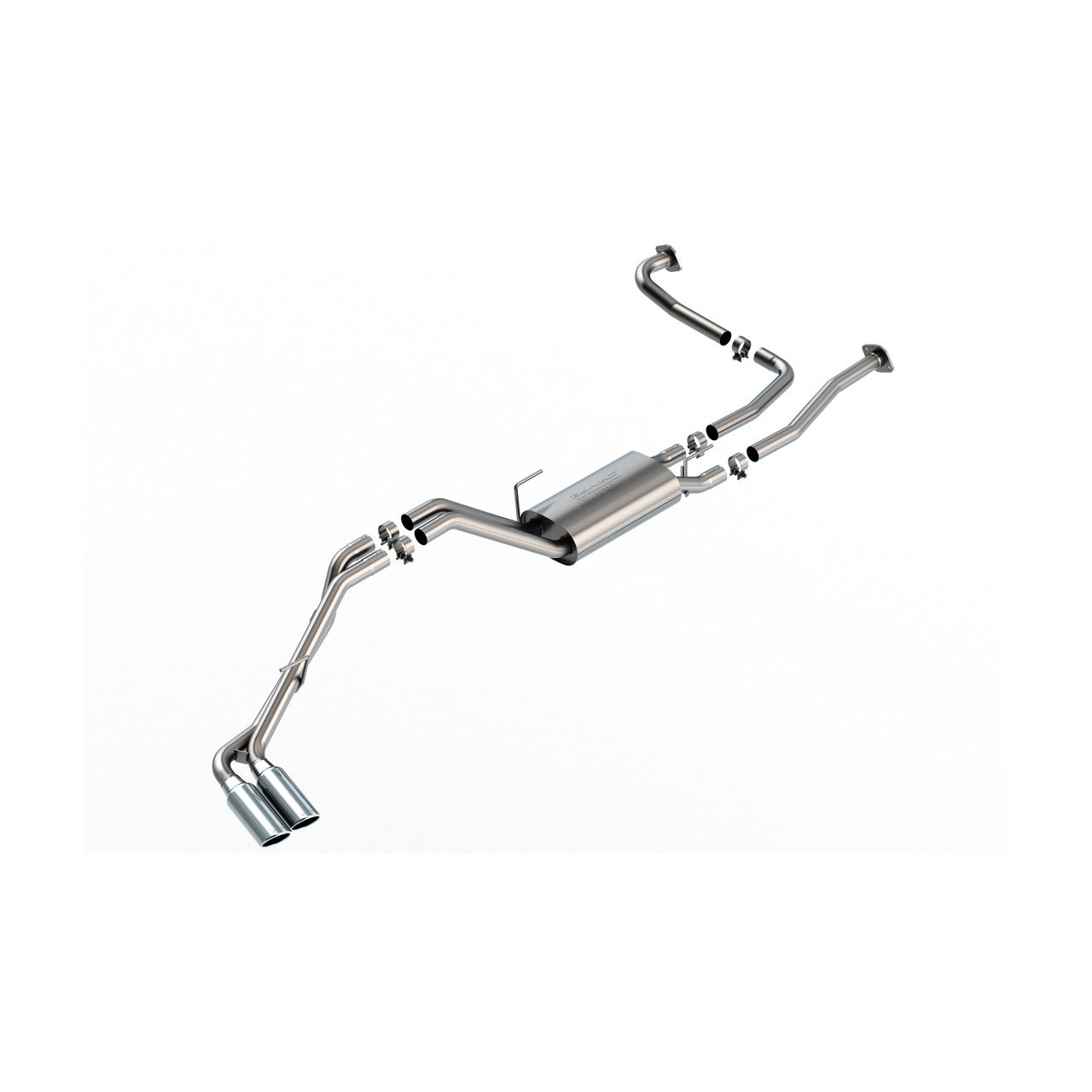 S-Type Cat-Back Exhaust System 2022-2025 Nissan Frontier 3.8L V6 AT 2WD/ 4WD Extended Cab With Standard Bed (6' 1") 126" WB/ Crew Cab With Short Bed (5') 126" WB/ Crew Cab With Standard Bed (6' 1") 139.8" WB. BORLA System Is True Dual.