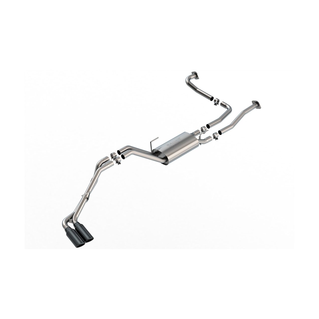 S-Type Cat-Back Exhaust System 2022-2025 Nissan Frontier 3.8L V6 AT 2WD/ 4WD Extended Cab With Standard Bed (6' 1") 126" WB/ Crew Cab With Short Bed (5') 126" WB/ Crew Cab With Standard Bed (6' 1") 139.8" WB. BORLA System Is True Dual.
